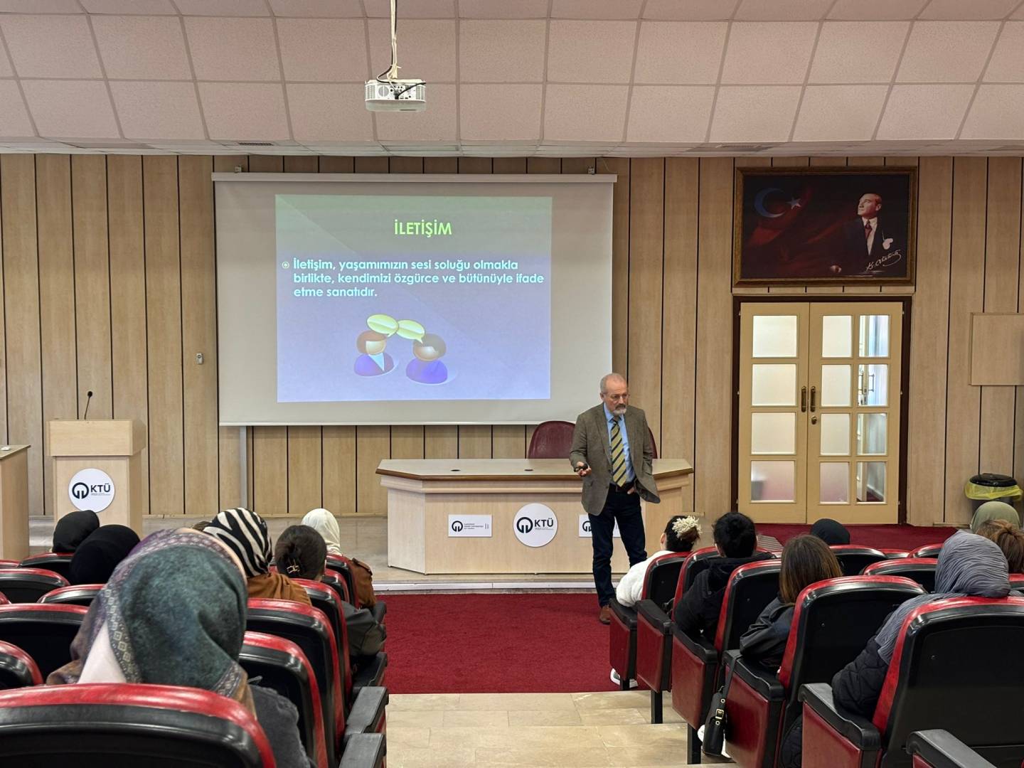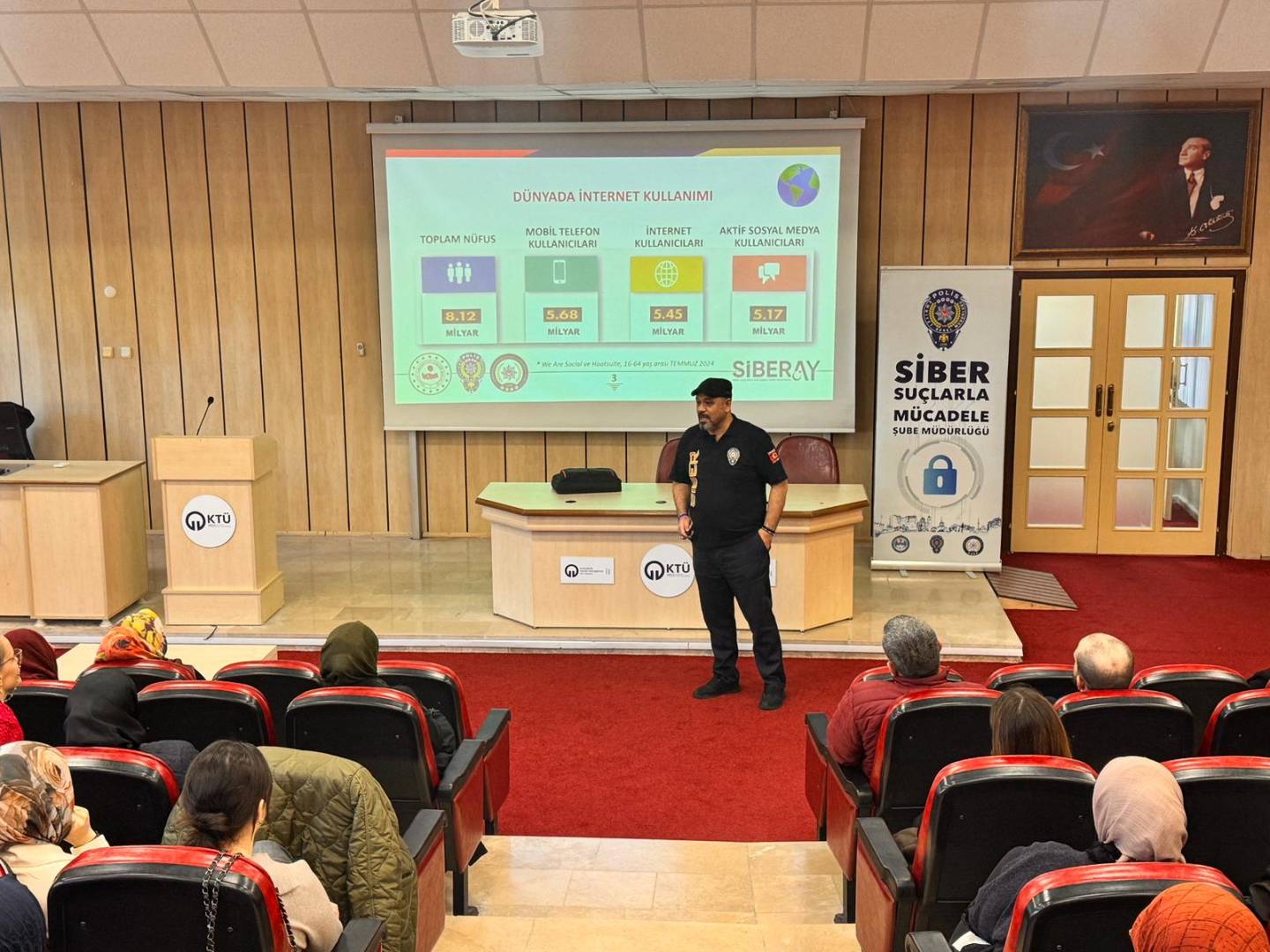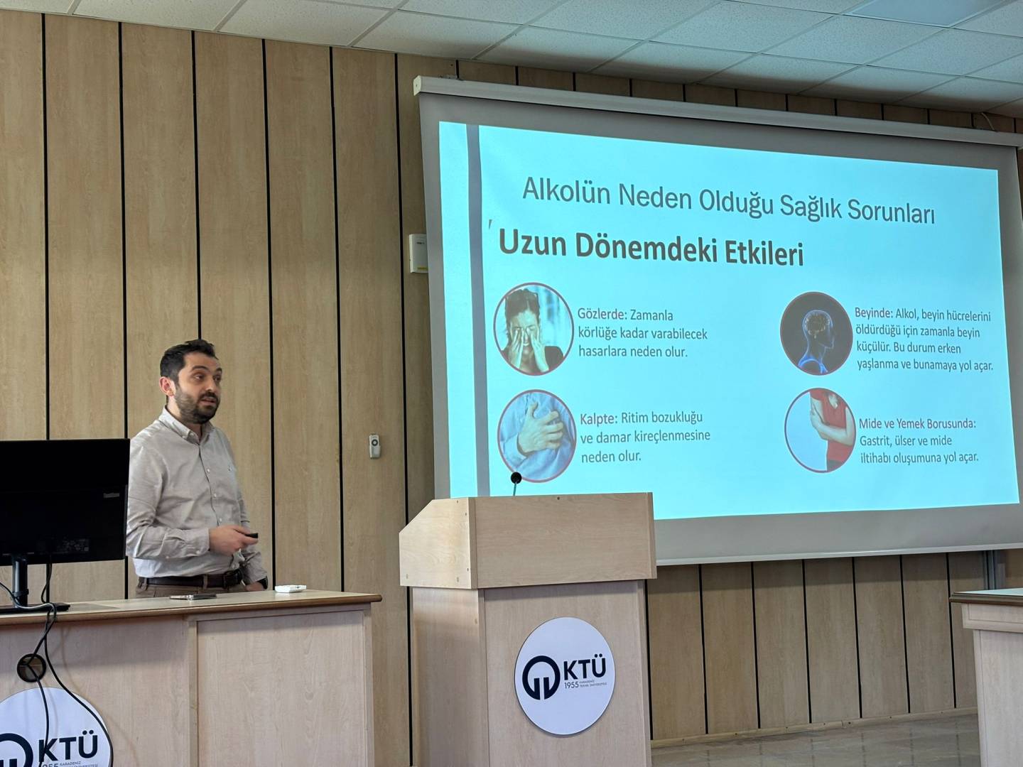 Bu kapsamda video kayıtlı eğitimler KTÜ Fen Fakültesi Nazım Terzioğlu Amfisinde katılımcılar tarafından toplu şekilde takip edilmiştir.