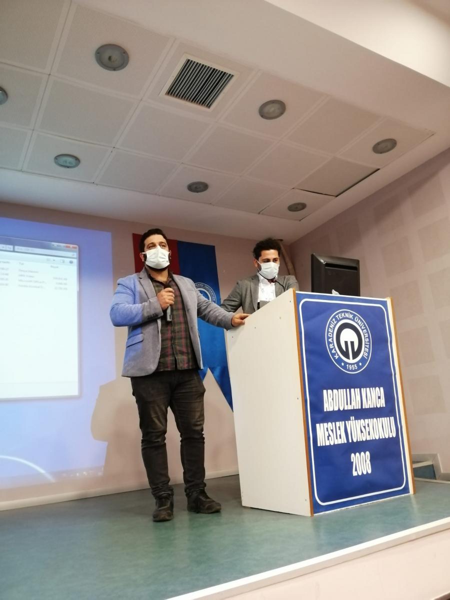 Denizcilik kariyer günleri etkinlikleri çalışmaları nedeniyle Trabzon’da bulunan Lucent Maritime şirketi yetkilisi Sayın: Gökhan BAĞIŞ, KTÜ Sürmene Abdullah Kanca Meslek Yüksekokulumuzu ziyaret ederek konferans salonumuzda öğrencilerimize yönelik bilgi vererek; Meslek Yüksekokulu mezunu öğrencilerin gemilerde çalışma şartları “Elektro Technical Officer ve Gas Engineer” mesleği hakkında bilgi, mesleğin incelikleri, avantajları, Dünyadaki yeri hakkında bilgi verirken, ekonomik şartlar kısmında ise; kendini yetiştiren, yabancı dilini geliştiren kişilerin aylık 4-5.000 USD’ye iş imkanı bulabildiklerini ifade etti. Konferans soru-cevap kısmı ile sona erdi.