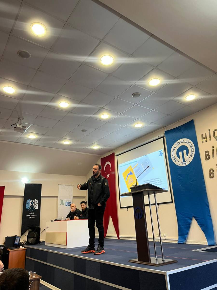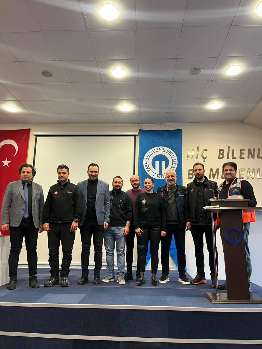 11 Aralık 2025 tarihinde Meslek Yüksekokulumuz konferans salonunda AFAD Trabzon İl Müdürlüğü tarfından "Afet Farkındalık Eğitimi" gerçekleştirildi. Eğitim Şube Müdürü Tolga MUSLU, Eğitim Uzmanı M.Önder BAYTAR ve Arama ve Kurtarma Şefi Erkan AKPINAR tarafından "Afet Farkındalık Eğitimi", "Afad Gönüllülük Sistemi" ve "Arama Kurtarma Faaliyetleri" konu başlıkları hakkında bilgilerin verildiği etkkinliğe öğrencilerimiz yoğun katılım sağladı. Öğrencilerin sık sık soru ve yorumları ile katkıda bulunduğu etkinliğin sonunda Yükseokulumuz Müdürü Prof. Dr. Özcan ÖZYURT ve Mülkiyet Koruma ve Güvenlik Bölüm Başkanı Öğr. Gör. Dr. Ahmet Cem ESENLİKCi tarafından katılımcılara plaket ve teşekkür belgesi takdim edildi.