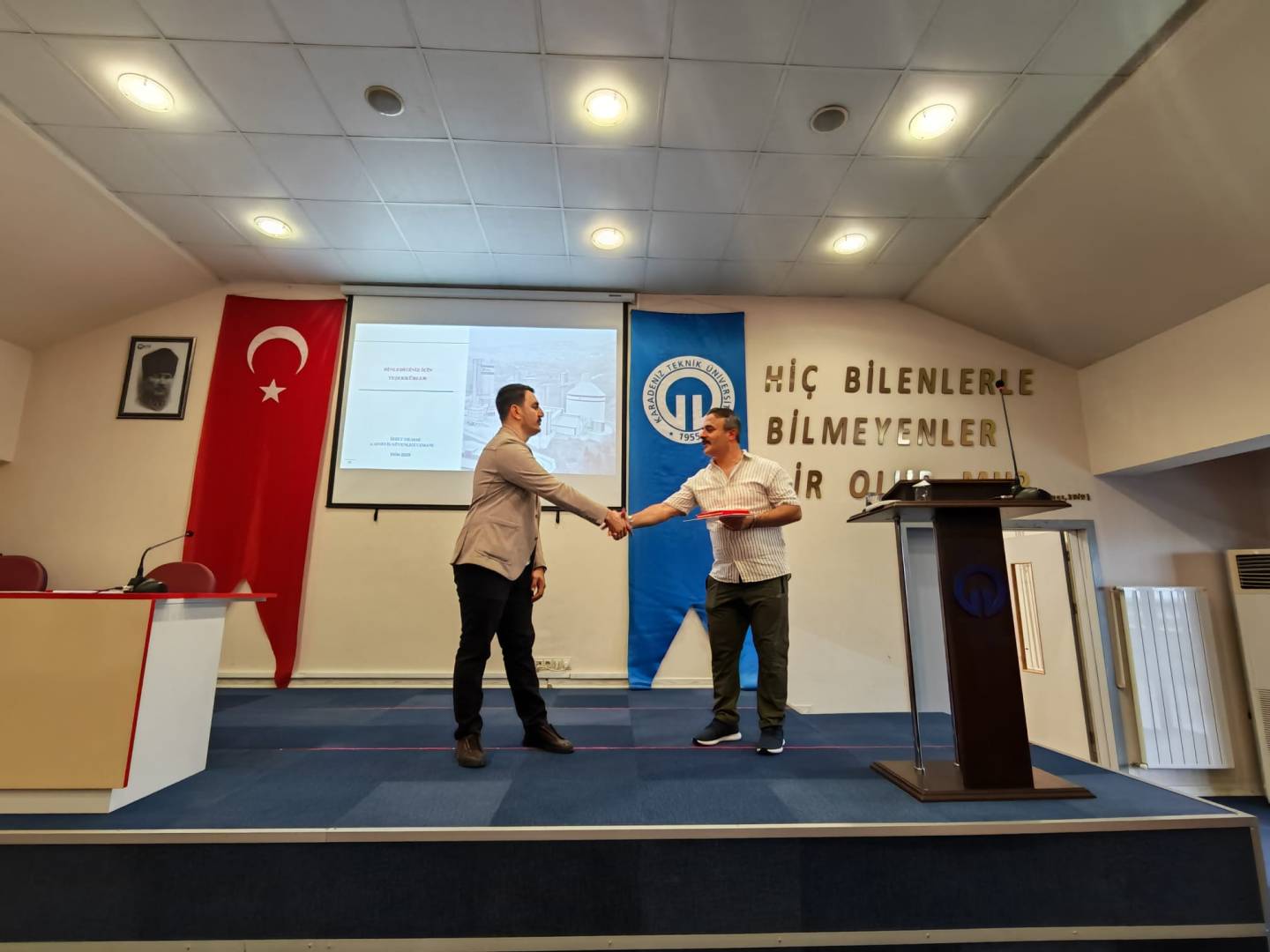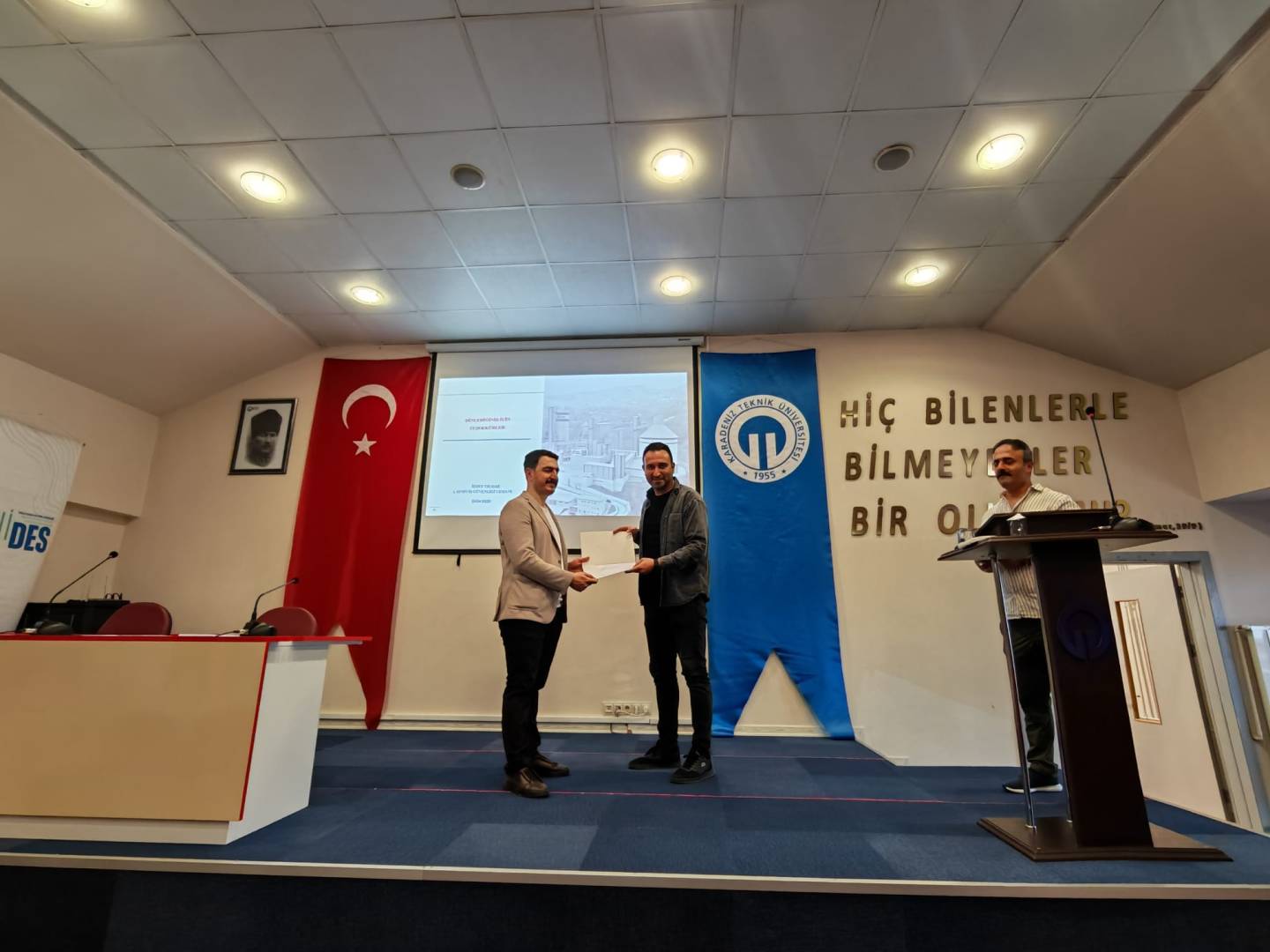Sunumun ardından, katkılarından dolayı A Sınıfı İş Güvenliği Uzmanı İzzet Yılmaz’a teşekkür belgesi Bölüm Başkanı Öğr. Gör. Dr. Ahmet Cem Esenlikci tarafından, plaket ise Müdür Yardımcısı Öğr. Gör. Mustafa Günaydın tarafından takdim edildi. Törenin ardından etkinlik, katılımcıların memnuniyetle ayrıldığı bir atmosferde sona erdi.