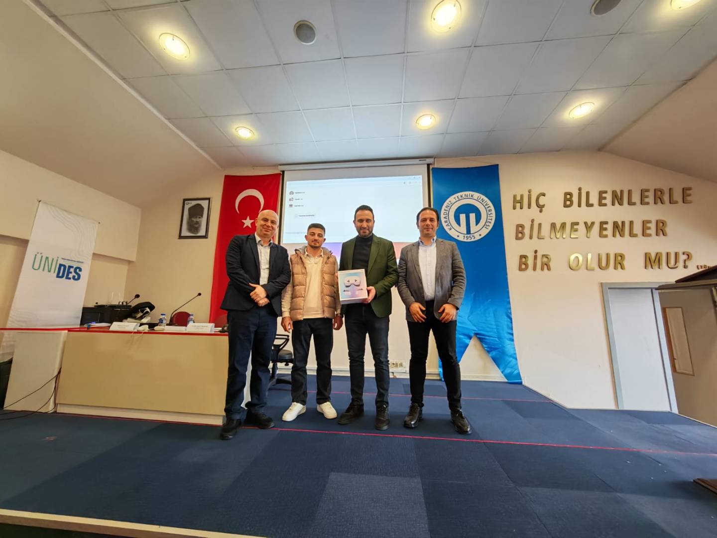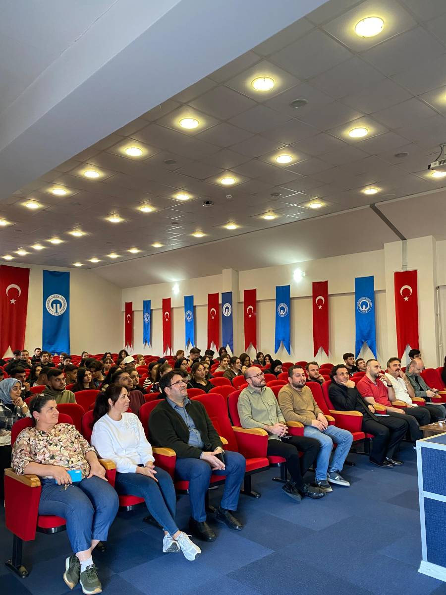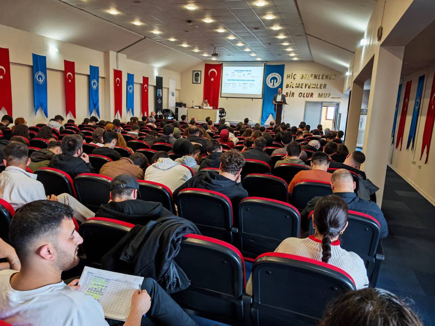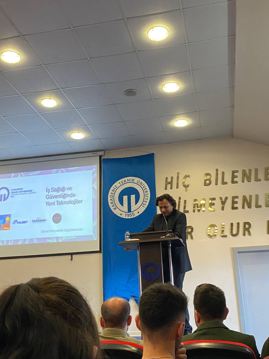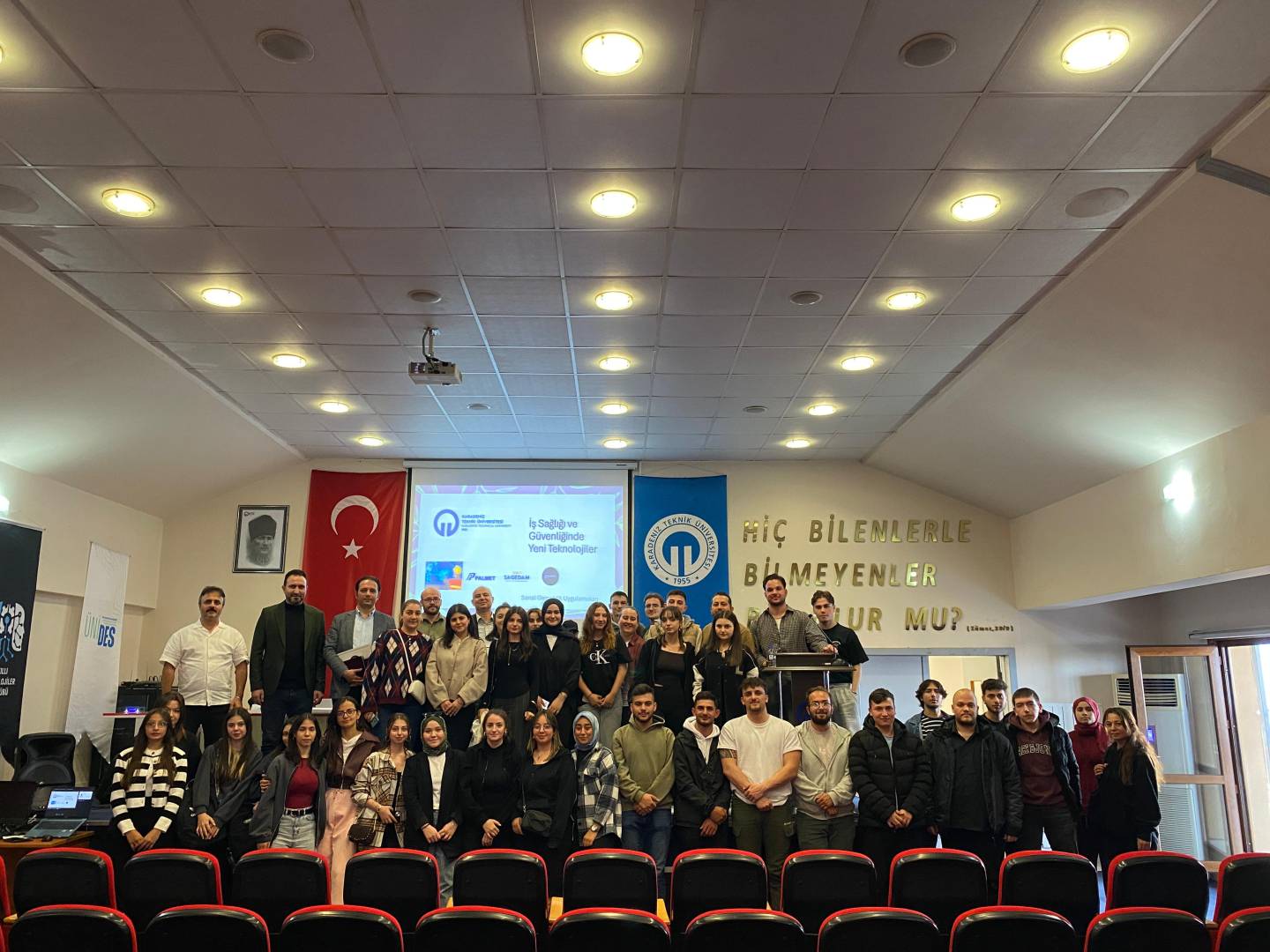 İş Sağlığı ve Güvenliğinde Yeni Teknolojiler: Sanal Gerçeklik Uygulamaları Konferansı öğrencilerin yoğun katılımı ile gerçekleştirildi. İş Sağlığı ve Güvenliği Programı tarafından organize edilen ve SAGEDAM Eğitim ve Danışmanlık'tan Eğitim Yöneticisi Murat Yılmaz; PALMET Enerji'den İSG ve Çevre Müdürü Erdem GEZGİNCİ ve PANİMO Games'ten Tuğrulhan MALKOÇ'un katılımı ve sunumu ile iş sağlığı ve güvenliği alanında kullanılan yeni teknolojiler hakkında bilgiler verilen; deneyimler paylaşılan konferans öğrenciler tarafından büyük ilgi gördü. Yüksekokul Müdürümüz Prof. Dr. Özcan ÖZYURT hocamızın açılış konuşması ile başlayan konferans sırası ile Murat YILMAZ, Erdem GEZGİNCİ ve Tuğrulhan MALKOÇ'un konuşmaları ile davam etti.