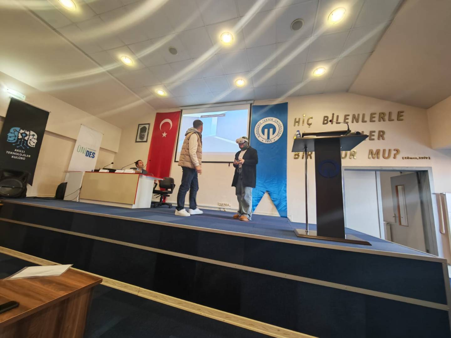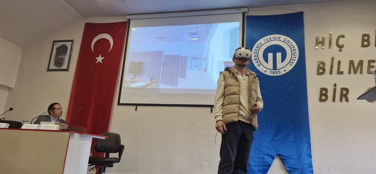 İş Sağlığı ve Güvenliği alanında simulasyonları ve senaryoları geliştiren Tuğrulhan MALKOÇ, sanal gerçeklik ve sanal gözlük uygulamaları hakkında bilgi vererek tasarladığı simulasyonların öğrencilerin deneyimlemesine katkıda bulundu.