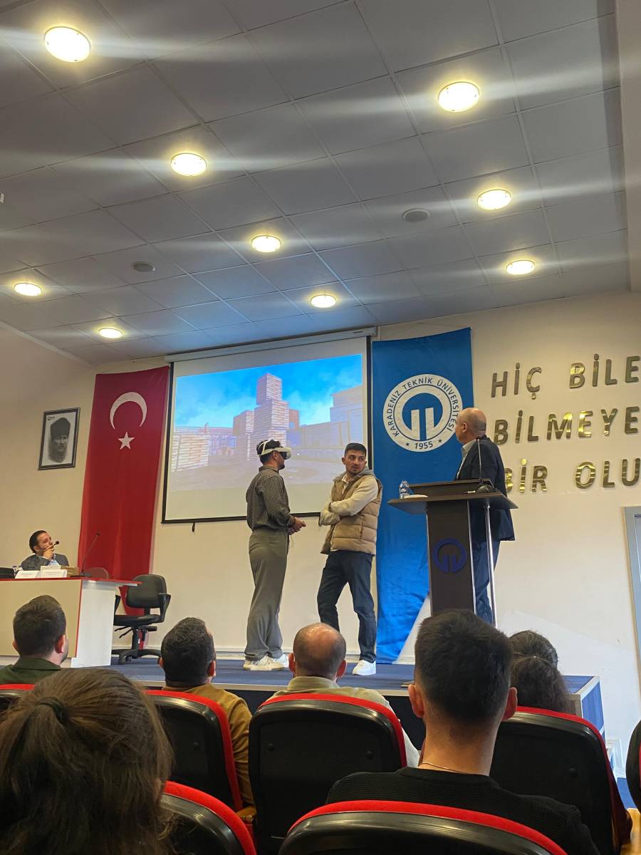 Öğrencilerimizden gönüllü olanların VR gözlükler ile "tehlike avcılığı" ve "yangın" senaryolarını deneyimlediği etkinlikte SAGEDAM Eğitim ve Danışmanlık tarafından okulumuza 1 adet VR Sanal Gerçeklik Gözlüğü hediye edildi. Konferans sonunda katılımcılara değerli katkıları ve iş birlikleri için bölüm hocalarımız tarafından teşekkür belgesi ve plaket taktim edildi.