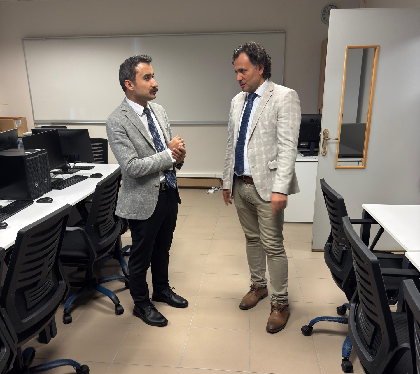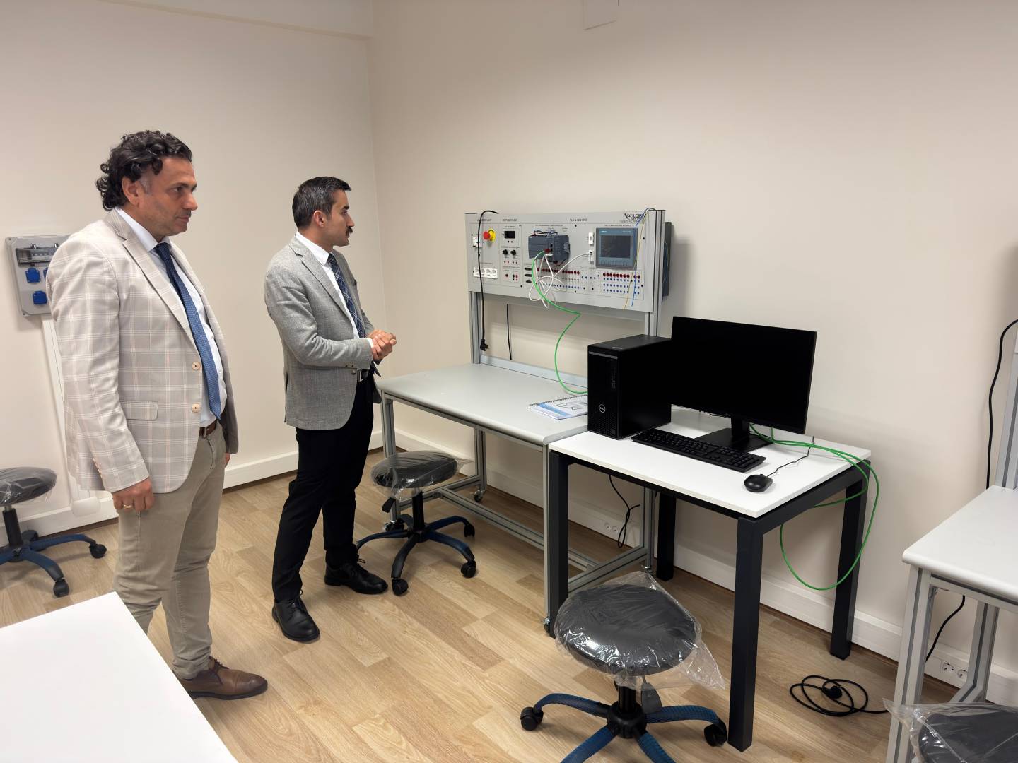 Ziyarette, Yüksekokul Müdürümüz Prof. Dr. Özcan ÖZYURT tarafından Meslek Yüksekokulumuzun bölümleri, yürütülen akademik çalışmalar ve öğrencilerimize sunulan eğitim imkânları hakkında kapsamlı bilgiler verildi. Ayrıca okulumuz derslikleri, yeni kurulan bilgisayar laboratuvarı ile PLC laboratuvarı gezilerek yapılan çalışmalar tanıtıldı.