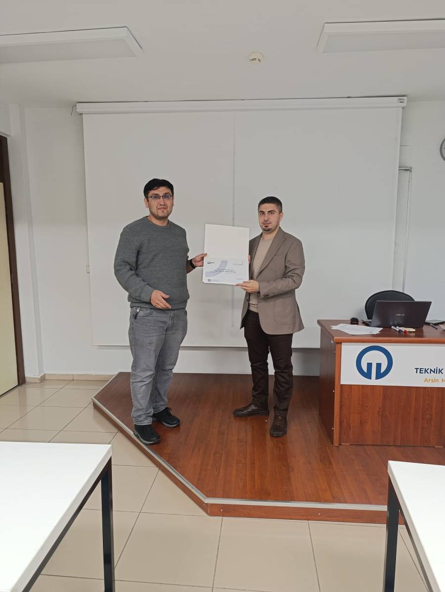 Arsin Meslek Yüksekokulu ve Arsin Halk Eğitim Merkezi iş birliği ile 22 Ekim 2024-13 Kasım 2024 tarihleri arasında meslek yüksekokulumuzda "Doğalgaz Yakıtlı Kalorifer Ateşçisi" kursu verildi