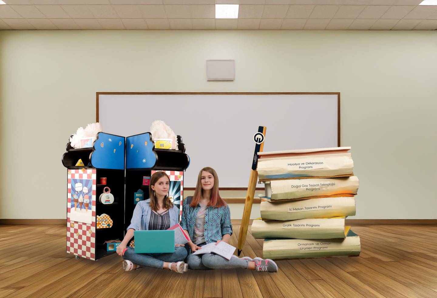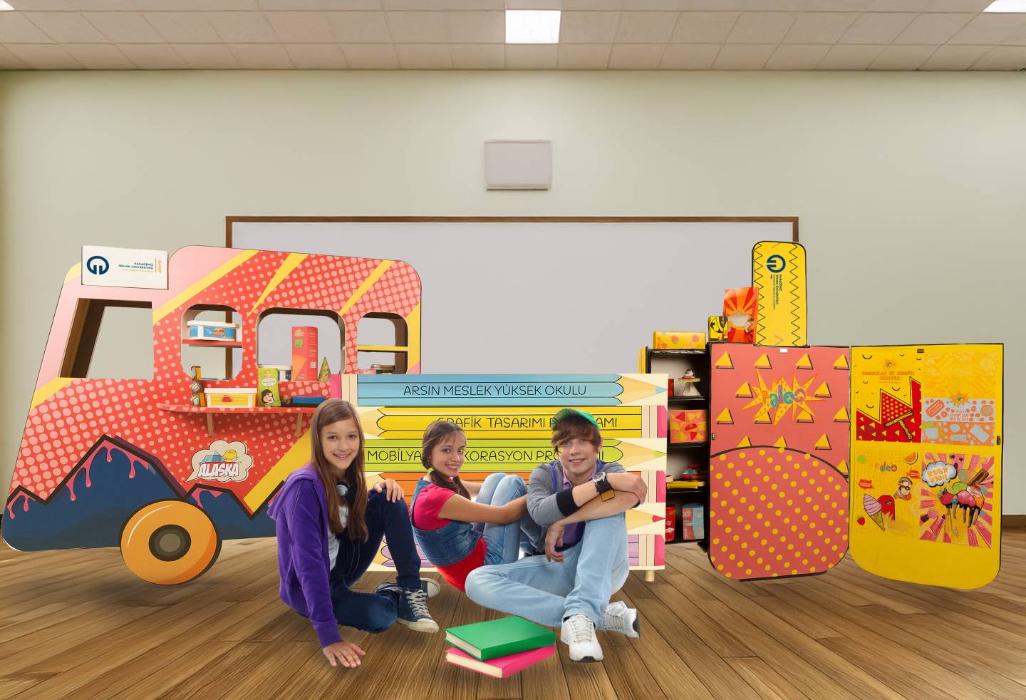 Grafik Tasarımı ve Mobilya ve Dekorasyon öğrencilerinin ortak stant tasarımı çalışmaları
