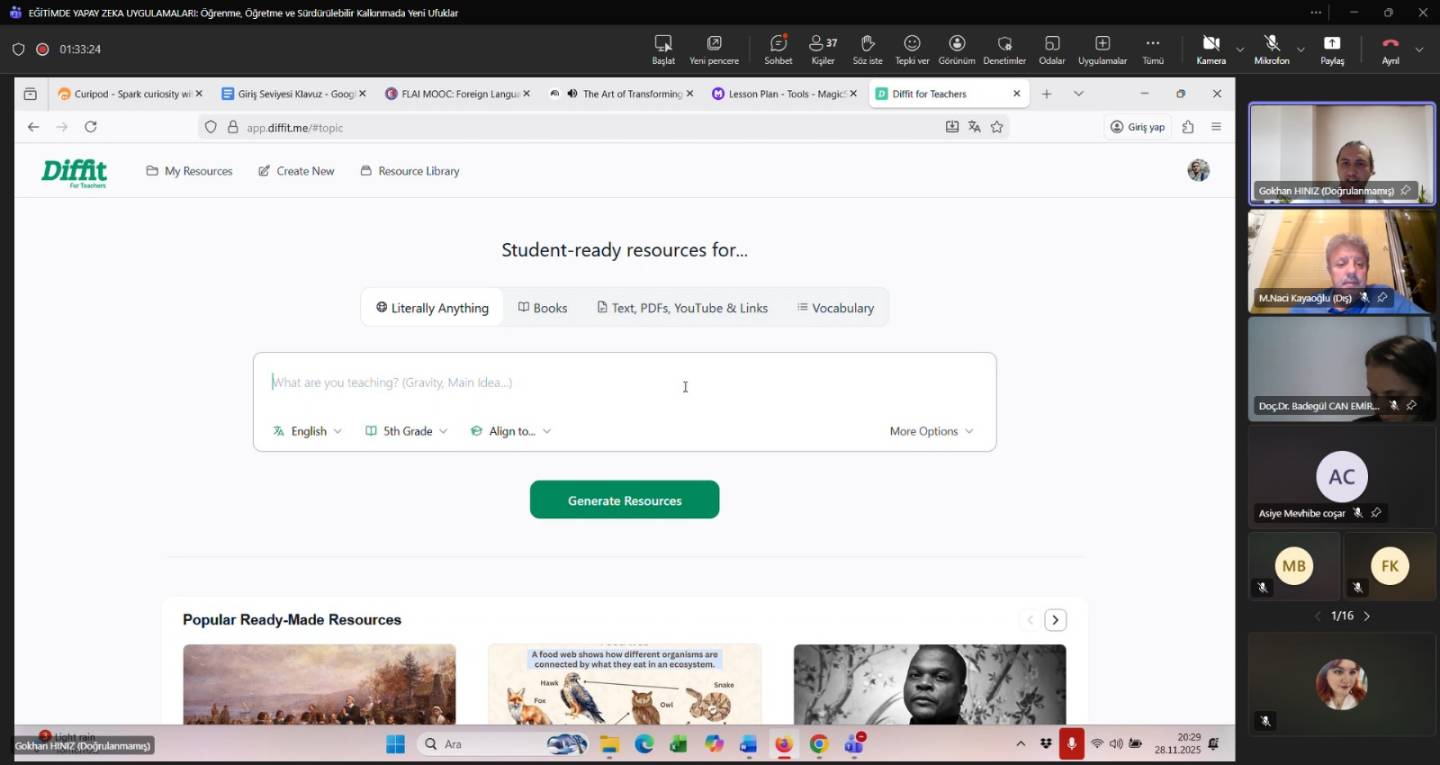 28.11.2025 tarihinde İngiliz Dili ve Edebiyatı, Rus Dili ve Edebiyatı ve Türk Dili ve Edebiyatı bölümleri olarak, Öğr. Gör. Dr. Gökhan HINIZ hocamızı "Eğitimde Yapay Zeka Uygulamaları: Öğrenme, Öğretme ve Sürdürülebilir Kalkınmada Yeni Ufuklar" başlıklı semineri ile ağırladık. Dil öğretimi, öğrenimi ve ders planı hazırlama gibi önemli konulara değinen hocamızın düzenlediği, Uluslararası Araştırmacılar Derneği destekli eğitim programlarına aşağıdaki linkler üzerinden erişebilirsiniz.
