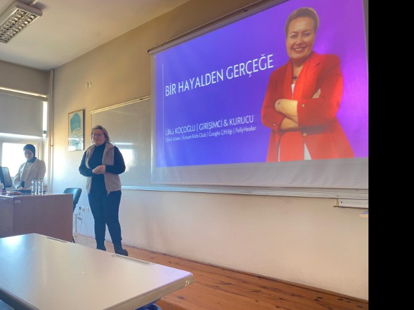 Ülkü KOÇOĞLU sunumu ile öğrencilerimize girişimcilik yolculuğunu anlattı.