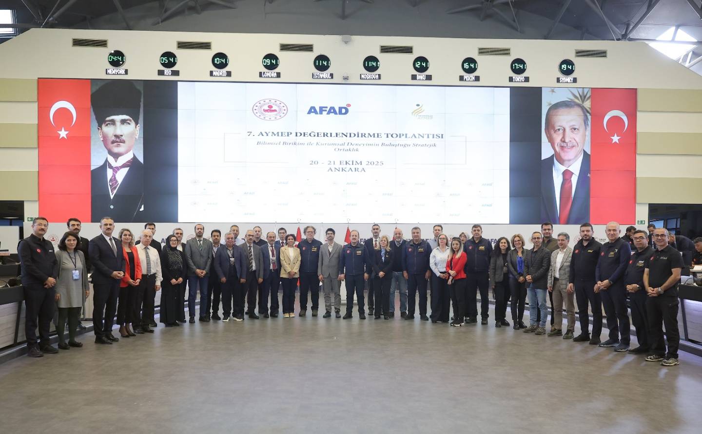 AFAD tarafından düzenlenen 7. Üniversiteler Arası Afet Yönetimi Eğitim Programı (AYMEP) Değerlendirme Toplantısı, “Bilimsel Birikim ile Kurumsal Deneyimin Buluştuğu Stratejik Ortaklık” temasıyla 20–21 Ekim 2025 tarihlerinde AFAD Başkanlık Yerleşkesi Afet Yönetim Merkezi’nde gerçekleştirilmiştir. Programa Merkezimiz Yönetim Kurulu Üyesi Doç. Dr. Murat GÜNAYDIN katılım sağlamıştır.
