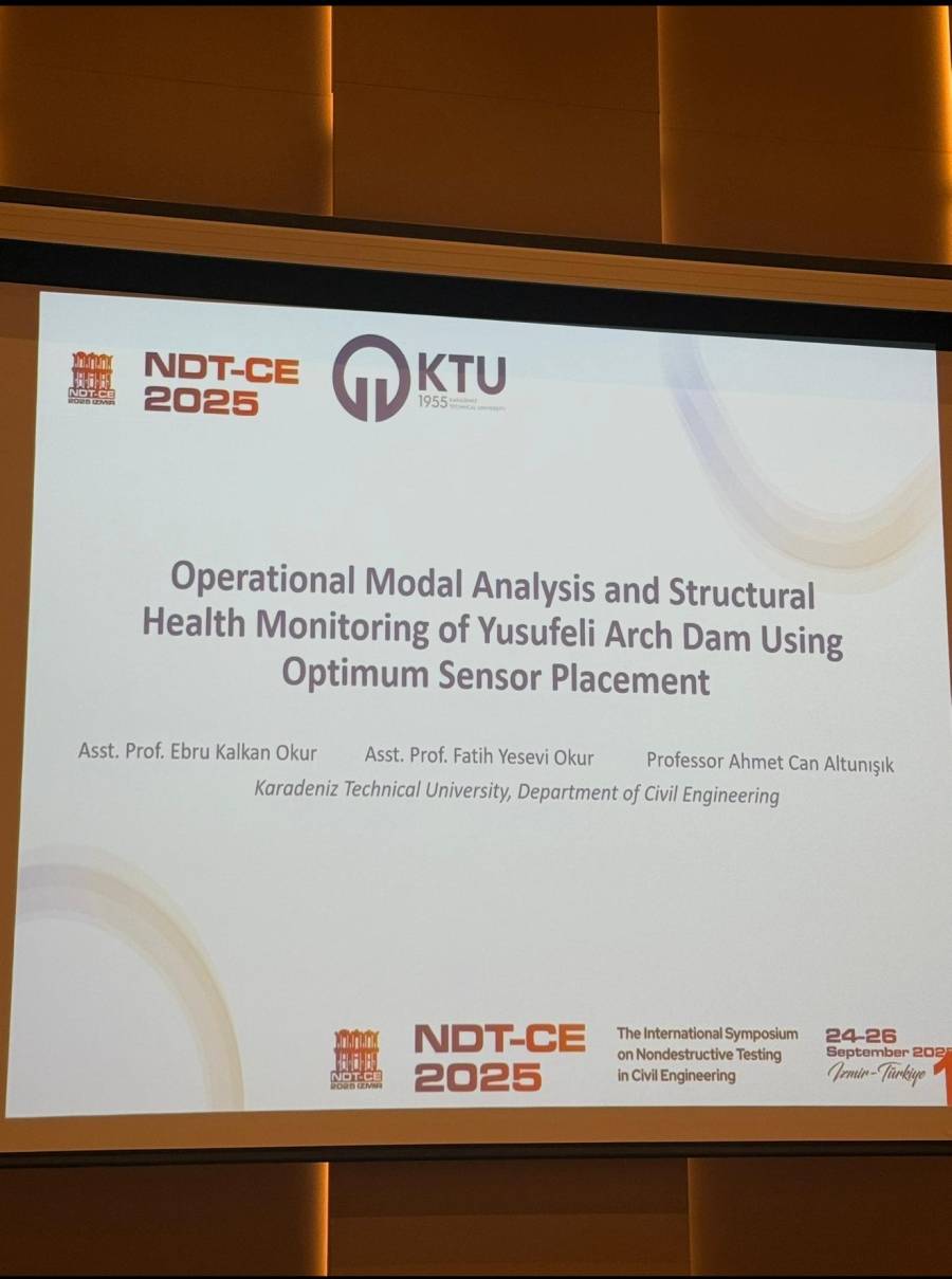 24–26 Eylül 2025 tarihlerinde İzmir’de düzenlenen International Symposium on Non-Destructive Testing in Civil Engineering (NDT-CE 2025) etkinliğine, merkez müdür yardımcımız Dr. Öğr. Üyesi Fatih Yesevi Okur, Dr. Öğr. Üyesi Ebru Kalkan Okur ve Sara Mostofi ile katılım sağlanmıştır.