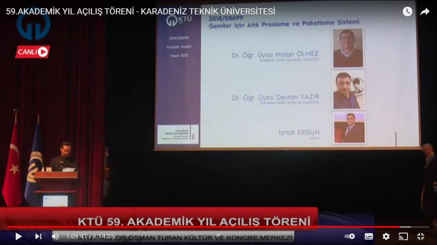 Üniversitemizin 2021-2022 Eğitim-Öğretim Yılı Açılış Töreni, 20 Ekim 2021 tarihinde, Osman Turan Kültür ve Kongre Merkezi’nde gerçekleştirildi. TÜBİTAK Başkanı Prof. Dr. Hasan MANDAL, “KTÜ’de İlk Ders” konulu konuşmasında, Türkiye’nin sadece teknolojiyi kullanan bir ülke olmasından daha çok teknolojiyi tasarlayan, geliştiren ve üreten bir ülke olması noktasında geçmişte de günümüzde de çok çaba sarf edildiğini vurguladı. Törenin sonunda, Araştırma Üniversitesi hedefiyle yol haritasını belirleyen Üniversitemizin, fikri sınai mülkiyet hakları kültürünün, Teknoloji Transferi Uygulama ve Araştırma Merkezi aracılığıyla oluşmasına verdiği önem noktasında, son yıllarda hız kazanan patent ve faydalı model başvuruları kabul edilen akademisyenlerimize çalışmalarıyla elde ettikleri tescilli patent ve faydalı modellerinin tebrik belgeleri takdim edildi.