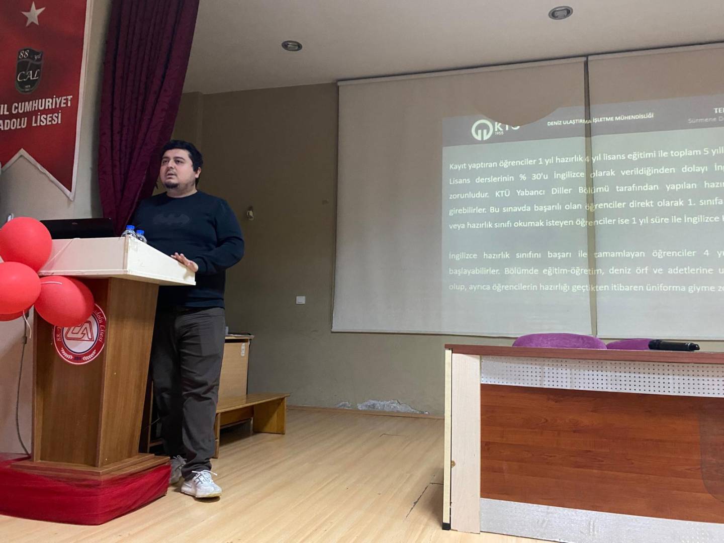 Programa, 88. Yıl Cumhuriyet Anadolu Lisesi’nin sayısal ve eşit ağırlık bölümlerinde öğrenim gören öğrenciler katıldı. Tanıtım sırasında Deniz Ulaştırma İşletme Mühendisliği Bölümü hakkında bilgiler verilerek bölümün eğitim süreci, mezuniyet sonrası çalışma alanları ve denizcilik mesleği öğrencilere anlatıldı.