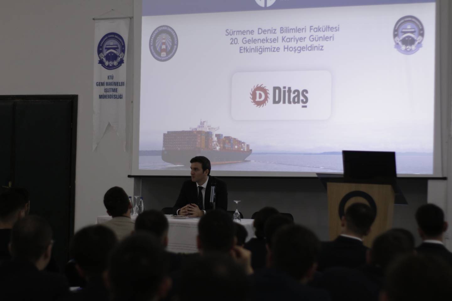 Etkinliğe, Ditaş Denizcilik Personel Enspektörü Serkan Mimir katılım sağladı. Gerçekleştirilen sunumda, firmanın filosu tanıtılarak işe alım süreçlerinde aranan kriterler hakkında öğrencilerimize bilgi verildi.