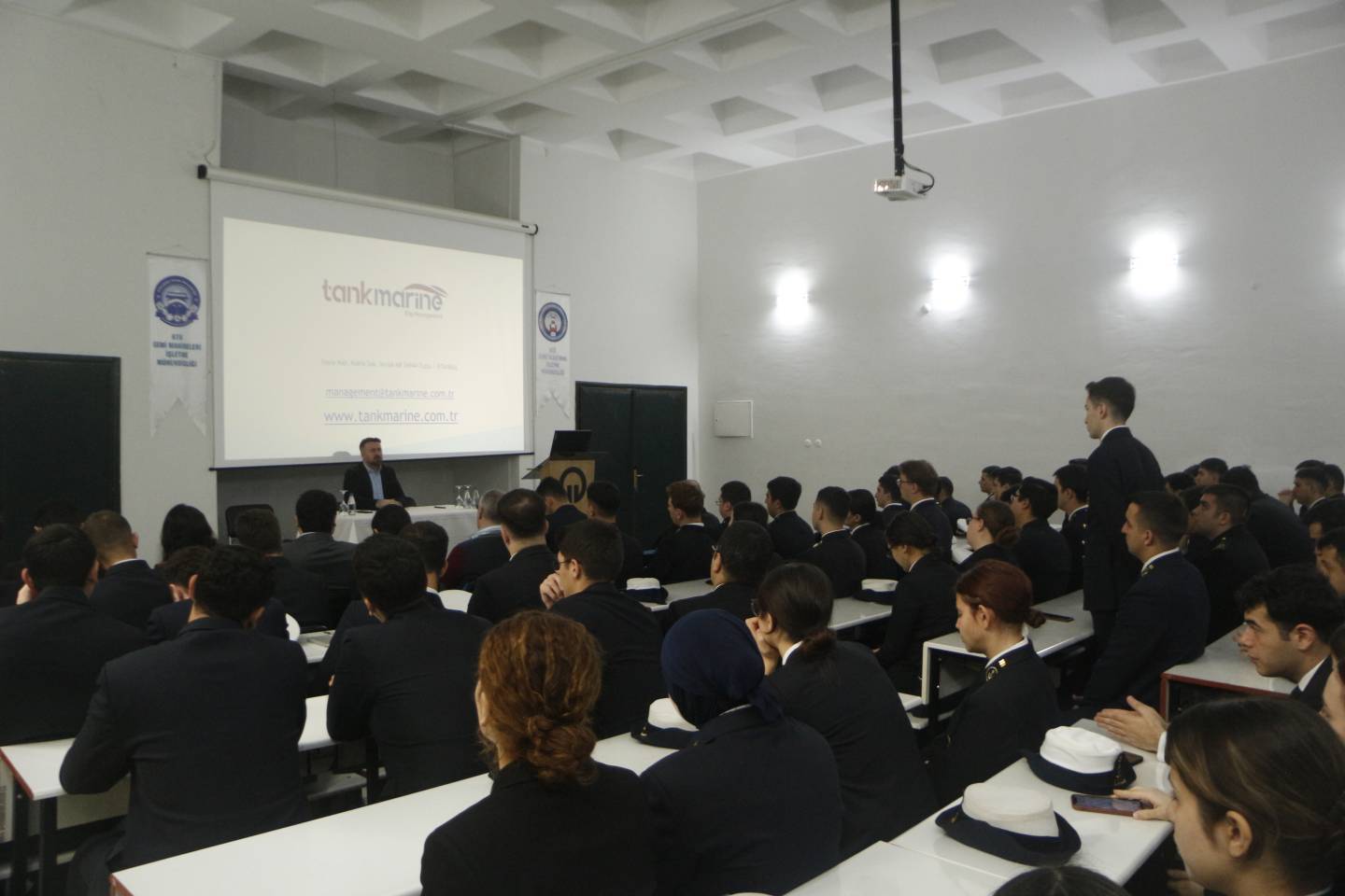 Ditaş Denizcilik Personel Enspektörü Serkan Mimir katılım sağladı. Gerçekleştirilen sunumda, firmanın filosu tanıtılarak işe alım süreçlerinde aranan kriterler aktarıldı