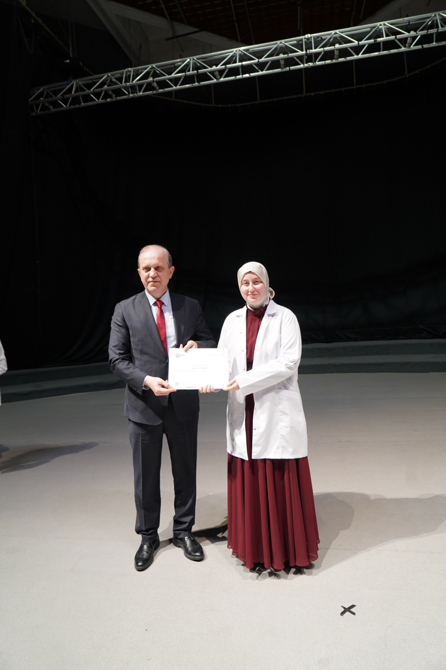 Rektörümüz Prof. Dr. Hamdullah ÇUVALCI ise Üniversitemizin köklü geçmişinden ve fakültemizin akreditasyon başarısına değindi. Rektörümüz konuşmasında, “Beyaz önlük manevi bir sorumluluk taşır; etik duruş ve doğru iletişim, mesleğin temelidir,” ifadelerini kullandı.