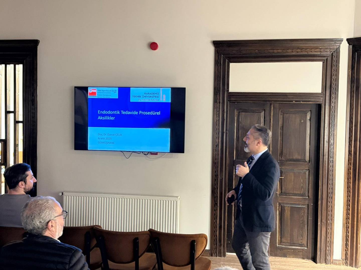 21 Aralık 2025 tarihinde gerçekleştirilen Gümüşhane Bilimsel Toplantısı, diş hekimliği alanındaki güncel klinik yaklaşımların ele alındığı bilimsel etkinlik düzenlendi. Söz konusu etkinlik, 2025 yılı Birim Danışma Kurulu toplantısında, Trabzon Diş Hekimleri Odası tarafından düzenlenmesi planlanan bilimsel toplantı, seminer ve panellerde fakültemiz akademik personelinin konuşmacı, moderatör veya düzenleyici olarak görev almasına yönelik alınan karar doğrultusunda hayata geçirildi.