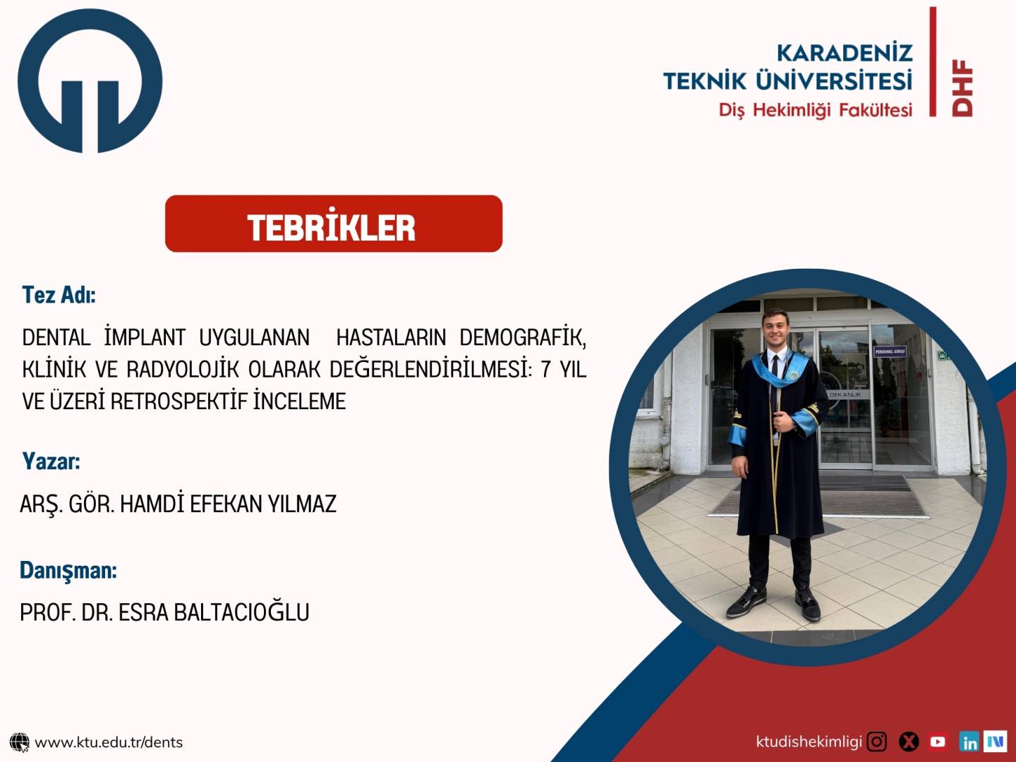 Fakültemiz Klinik Bilimler Bölümü Periodontoloji Anabilim Dalı Öğretim Elemanı Arş. Gör. Hamdi Efekan YILMAZ'ın Tez Çalışması