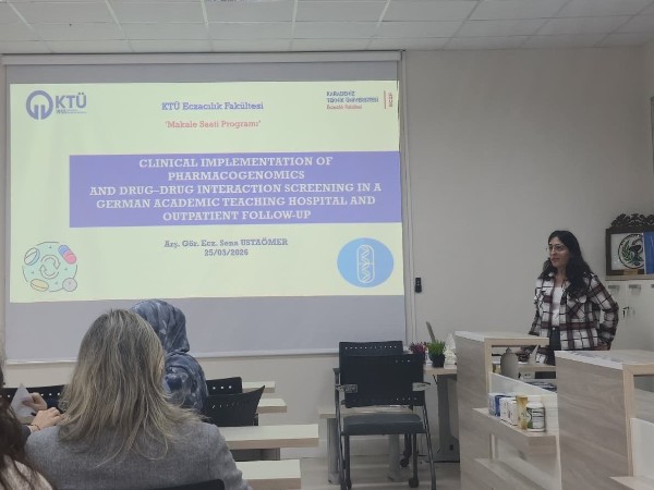 Fakültemiz Klinik Eczacılık Ana Bilim Dalı'ndan Arş. Gör. Sena USTAÖMER'in sunumuyla makale saati etkinliği gerçekleştirildi.