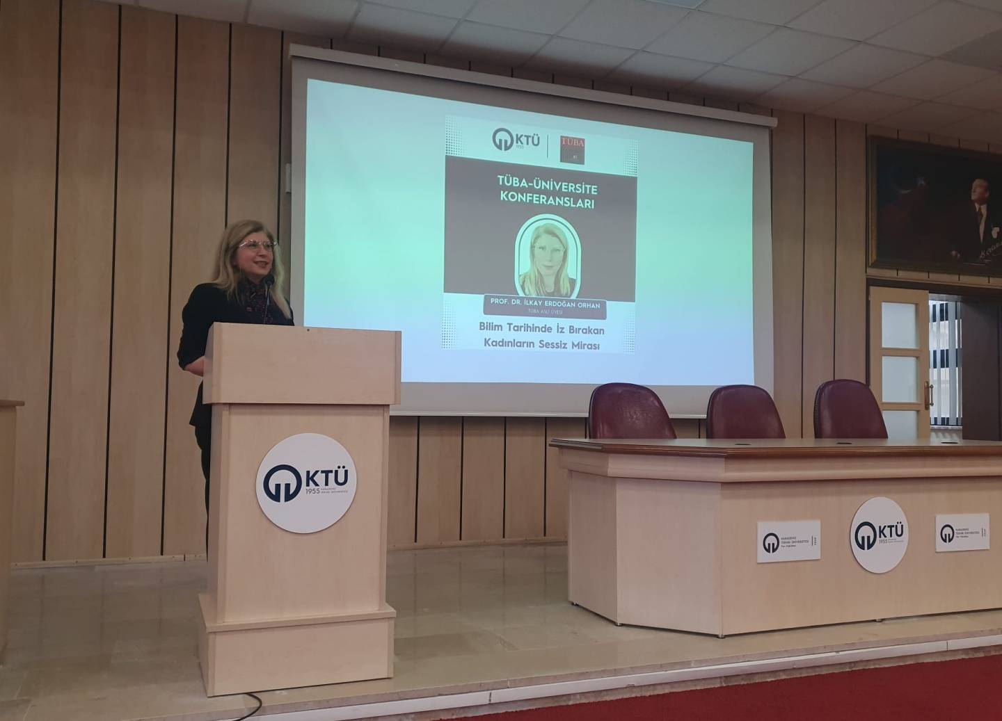 22 Nisan 2026 Çarşamba günü, Üniversitemiz Fen Fakültesi Nazım Terzioğlu Amfisi’nde düzenlenen konferansta; TÜBA Asli Üyesi ve Lokman Hekim Üniversitesi Eczacılık Fakültesi Dekanı Prof. Dr. İlkay Erdoğan Orhan, "Bilim Tarihinde İz Bırakan Kadınların Sessiz Mirası" başlıklı ilham verici bir sunum gerçekleştirdi. Konferansta, bilimin gelişiminde kritik roller üstlenen kadın bilim insanlarının tarihsel mirası mercek altına alındı.