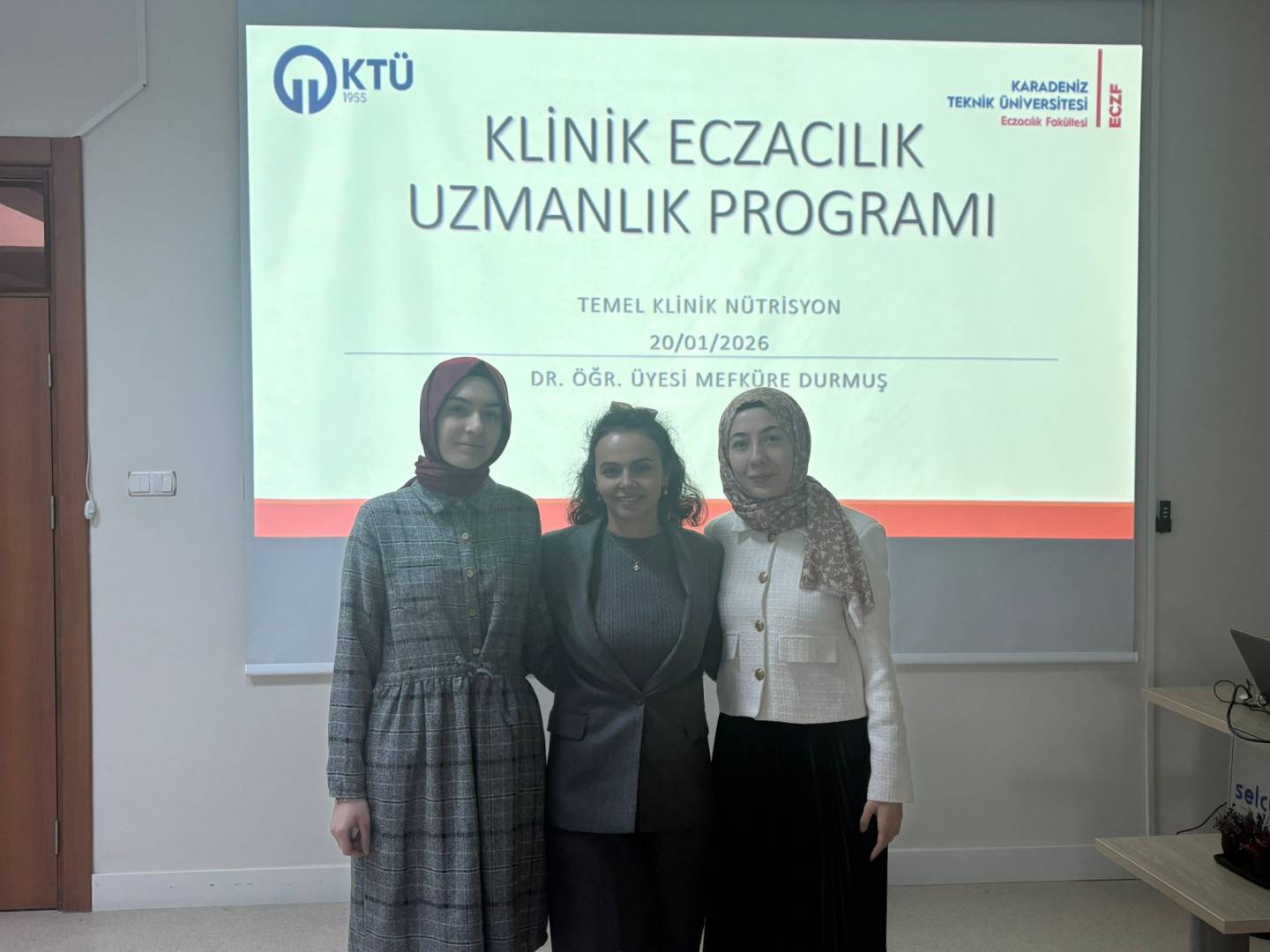 Fakültemiz Klinik Eczacılık Ana Bilim Dalı Başkanı Dr. Öğr. Üyesi Mefküre DURMUŞ’un yönetiminde yürütülen eğitim süreci, 19 Ocak 2026 tarihi itibarıyla 4 haftalık yoğun teorik programla başladı. Fakültemizin ilk klinik eczacılık uzmanlık öğrencilerine bu yeni ve akademik yolculuklarında başarılar diler, programın mesleğimize hayırlı olmasını temenni ederiz.