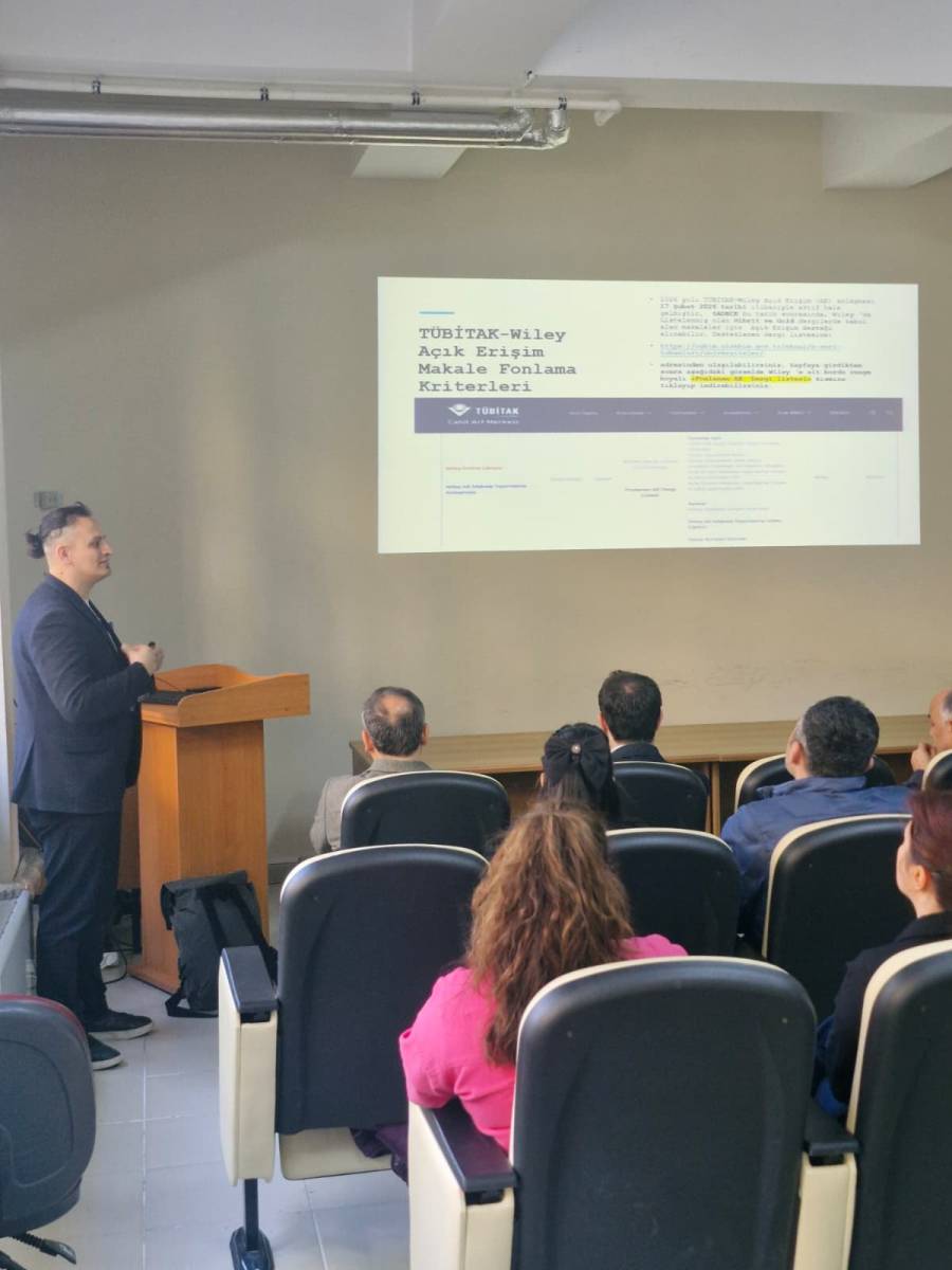 Etkinlik kapsamında Dr. Öğr. Üyesi Yücel BULUT, TÜBİTAK ULAKBİM tarafından sağlanan açık erişim yayın teşvikleri, anlaşmalı dergilerde makale yayımlama süreçleri ve uluslararası veri tabanlarına erişim imkanları hakkında bilgiler paylaştı. Üniversitemiz Bilimsel Araştırma Projeleri (BAP) Koordinasyon Birimi Koordinatörü Prof. Dr. Gökhan APAYDIN, BAP kapsamında sunulan güncel yayın destekleri, başvuru kriterleri ve araştırmacılara sağlanan finansal kolaylıklar üzerine bilgilendirme yaptı.
