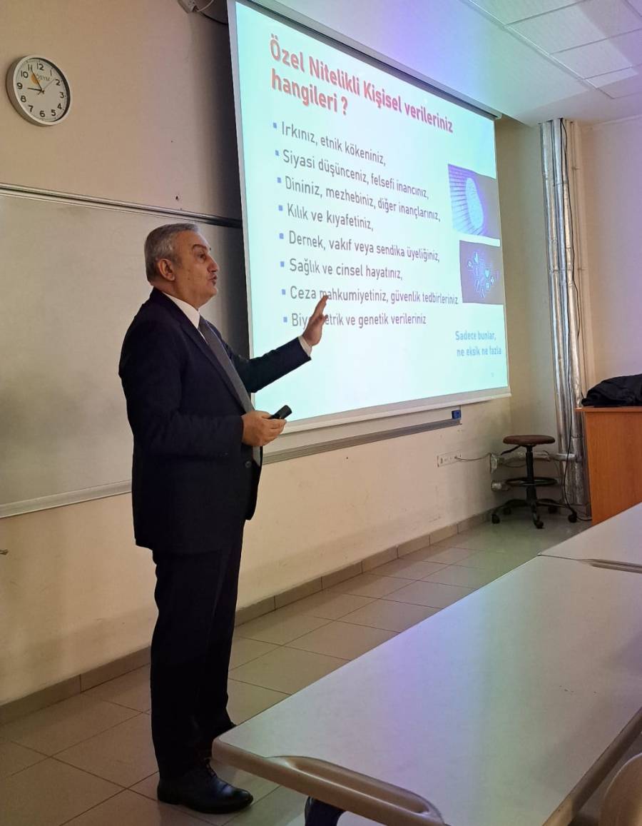 10 Aralık 2025 tarihinde "Eczacılık İşletmeciliği ve Mevzuatı" dersi kapsamında Üniversitemiz Rektör Danışmanı ve İktisadi ve İdari Bilimler Fakültesi İşletme Bölümü öğretim elemanı sayın Öğr. Gör. Ali Haydar DOĞU, "Eczacılıkta Kişisel Verilerin Korunması Kanunu ve Sorumluluklar" başlıklı sunum gerçekleştirdi.