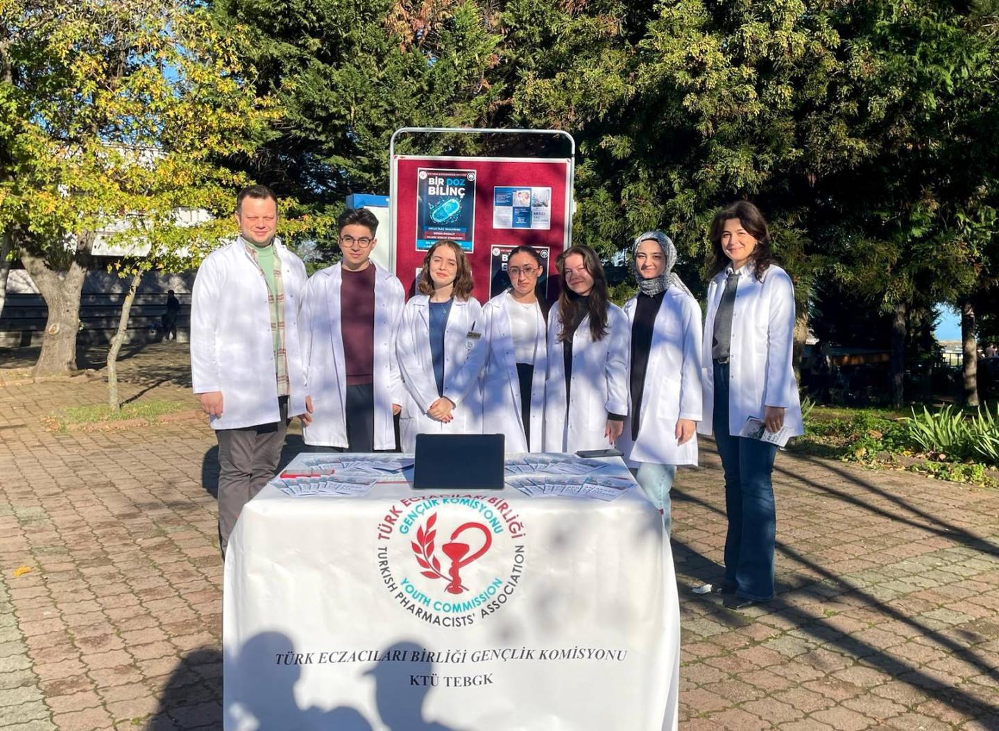 Fakültemiz Türk Eczacılık Birliği Gençlik Komisyonu (KTÜTEBGK) temsilci öğrencilerimiz tarafından yürülen "Bir Doz Bilinç" adlı sosyal sorumluluk projesi kapsamında Üniversitemiz Kanuni Kampüsü'nde 17 Aralık 2025 tarihinde “Akılcı İlaç Kullanımı” standı kuruldu.
