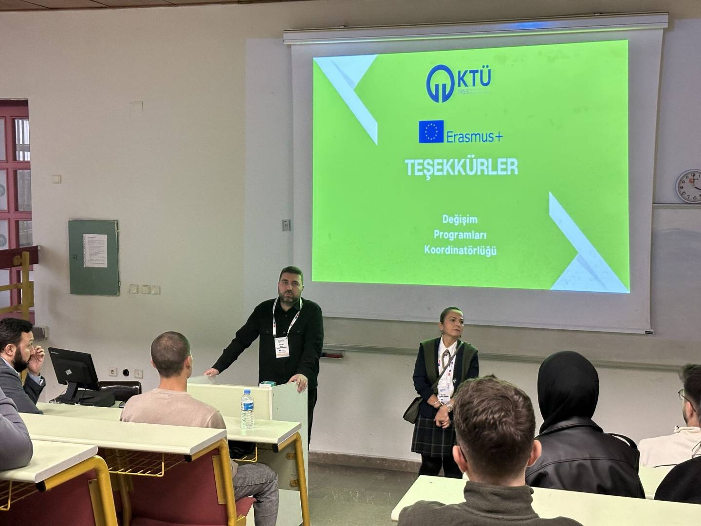 Karadeniz Teknik Üniversitesi Endüstri Mühendisliği Kulübü (EMK) tarafından düzenlenen Erasmus Tanıtım Etkinliği, 20 Ekim Pazartesi günü saat 15.00’te MA1 Amfisi’nde gerçekleştirildi. Etkinlik, öğrencilerin yurt dışında eğitim ve staj olanakları hakkında bilgi edinmelerini amaçladı ve yoğun katılımla tamamlandı.