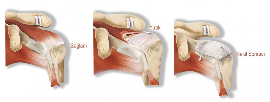 Görüntülemeler ve artroskopik inceleme sonucunda bazı yırtıkların tamir edilemeyeceğine karar verilebilir. Bu durumlarda hastanın vücudunun başka bir bölgesinden alınan kas dokuları omuza nakil edilebilir. Bu işlem artroskopik olarak kapalı yöntemle yapılabilmektedir. Gerek duyulması halinde mini açık tekniklere de başvurulabilir.