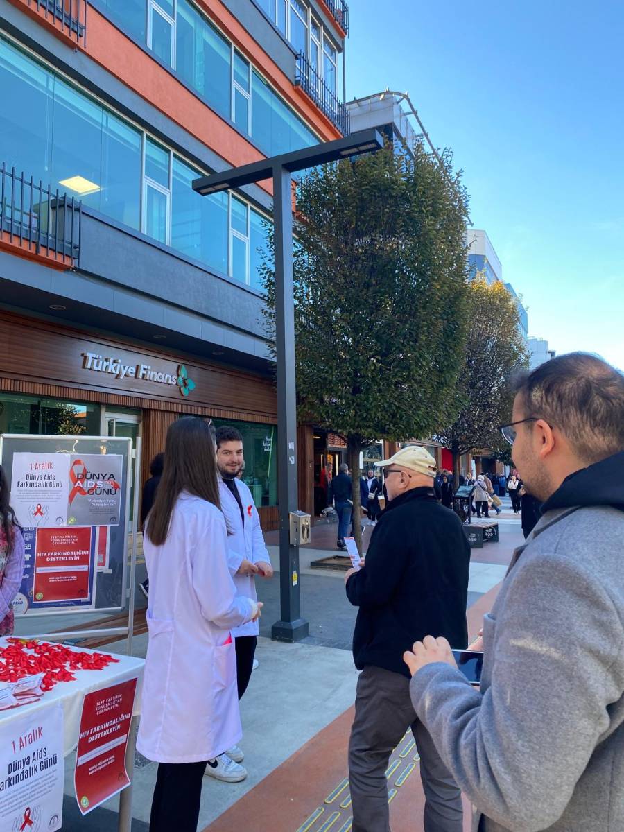 Saha boyunca bilgilendirici broşür ve afişler dağıtıldı, kurulan stantta vatandaşların soruları yanıtlandı. Ayrıca Dünya AIDS Günü’nün sembolü olan kırmızı kurdeleler, dayanışma ve farkındalık amacıyla halka takdim edildi.