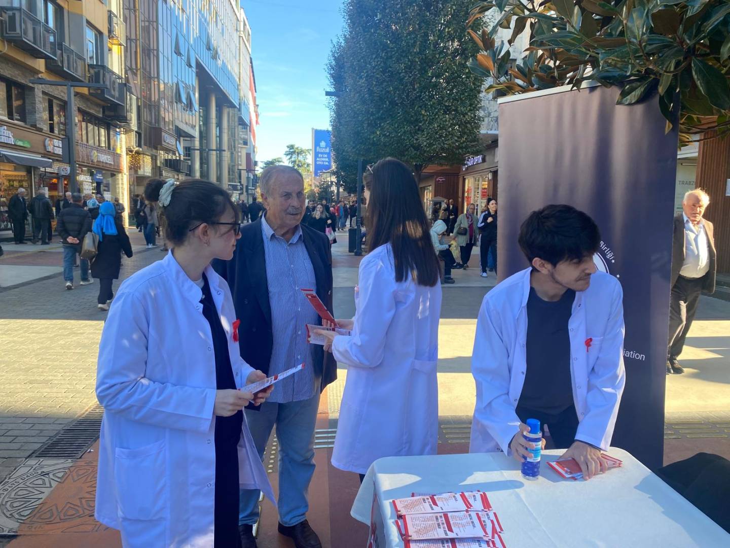 Karadeniz Teknik Üniversitesi (KTÜ) Tıp Fakültesi öğrencileri, AIDS’e karşı toplumda farkındalığı artırmak amacıyla sahada bilgilendirme etkinliği düzenledi. Geleceğin doktorları, HIV/AIDS konusunda doğru ve güncel bilgiye erişimi desteklemek için vatandaşlarla birebir iletişim kurdu.
