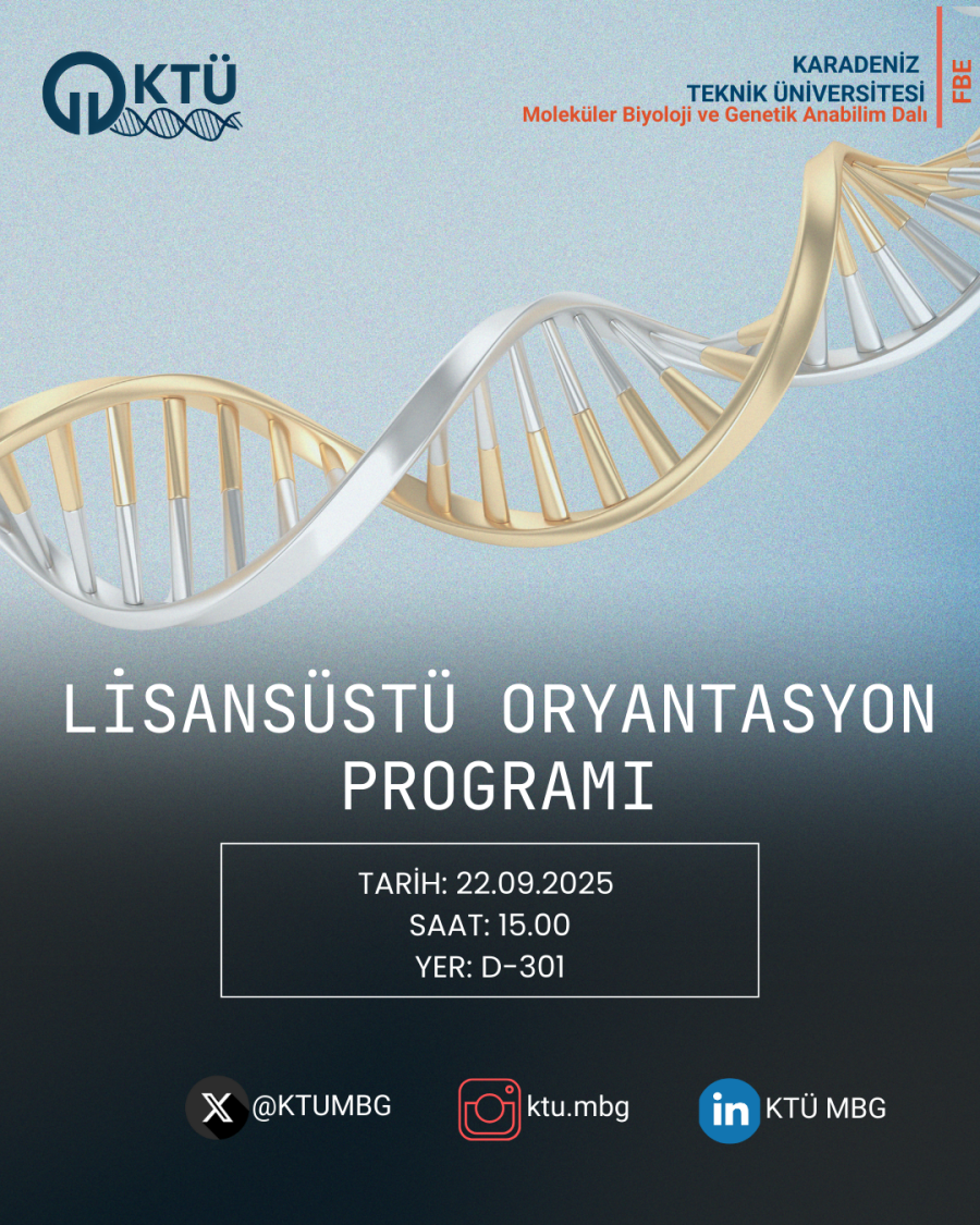 Bölümümüz tarafından 22 Eylül 2025 Pazartesi günü saat 15.00’te lisansüstü oryantasyon ve bilgilendirme toplantısı düzenlenecektir.