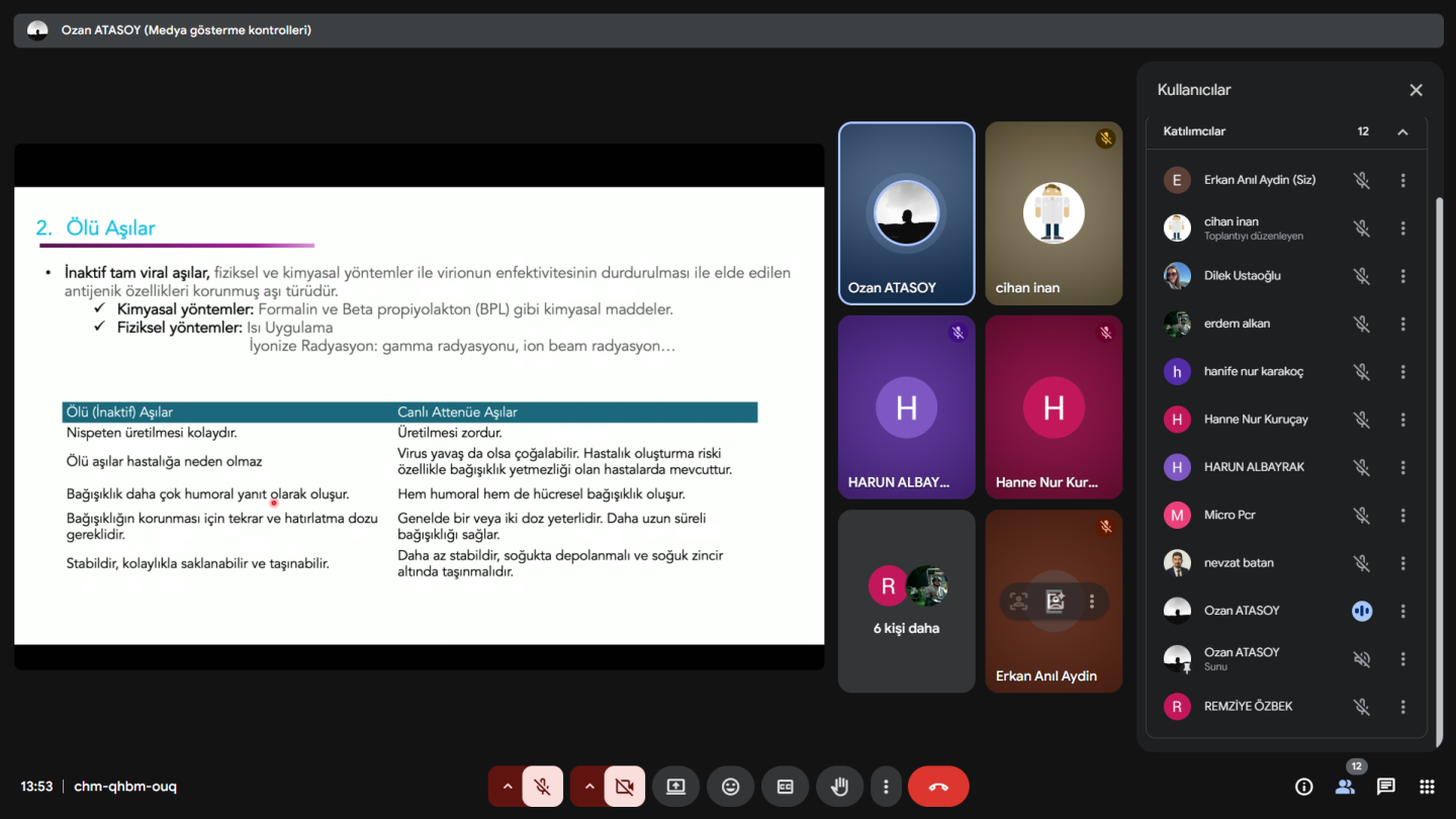 MBGL7083 Antiviral İlaçlar ve Viral Aşılar dersi kapsamında, “Viral Aşılar ve Aşı Teknolojileri” başlıklı bir çevrim içi seminer düzenlendi. Seminere, Sivas Cumhuriyet Üniversitesi Veteriner Fakültesi Klinik Öncesi Bilimler Bölümü öğretim üyesi Dr. Öğr. Üyesi Mustafa Ozan Atasoy konuşmacı olarak katıldı.