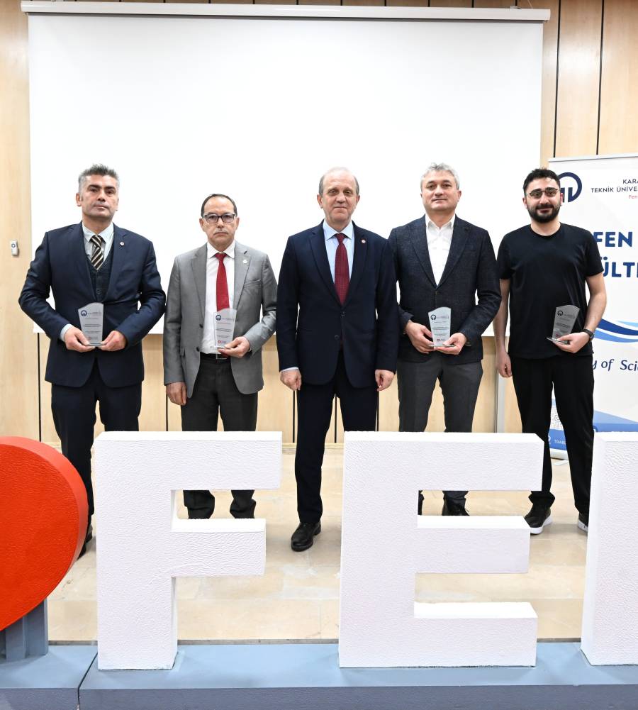 Törene Rektörümüz Prof. Dr. Hamdullah ÇUVALCI, Rektör Yardımcıları Prof. Dr. Ali TEMİZ, Prof. Dr. Ömer Faruk URSAVAŞ, Fakültemiz Dekanı Prof. Dr. Ali Osman BELDÜZ, dekan yardımcıları ile akademik ve idari personel katıldı. Program, saygı duruşu ve İstiklal Marşı’nın ardından Dekanımız Prof. Dr. Ali Osman BELDÜZ’ün fakültemizin 2025 yılı akademik performansını açıklayan sunumuyla başladı. KTÜ Rektör Prof. Dr. Hamdullah ÇUVALCI, törende yaptığı konuşmada akademik başarılarından dolayı öğretim üyelerini tebrik ederek, KTÜ’nün bilimsel üretkenliğine katkı sunan tüm akademisyenlere teşekkür etti. Konuşmaların ardından ödül takdimlerine geçildi.