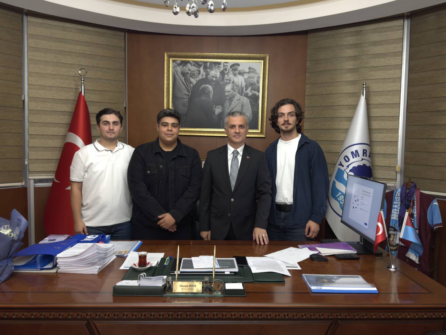 Karadeniz Teknik Üniversitesi Gemi İnşaatı ve Deniz Teknolojileri Kulübü (GEMDTEK) üyeleri, 15 Ekim 2025 tarihinde yerel yönetimle iş birliğini güçlendirmek ve kulüp faaliyetleri hakkında bilgi paylaşmak amacıyla Yomra Belediye Başkanı Sayın Mustafa BIYIK’ı makamında ziyaret etti.