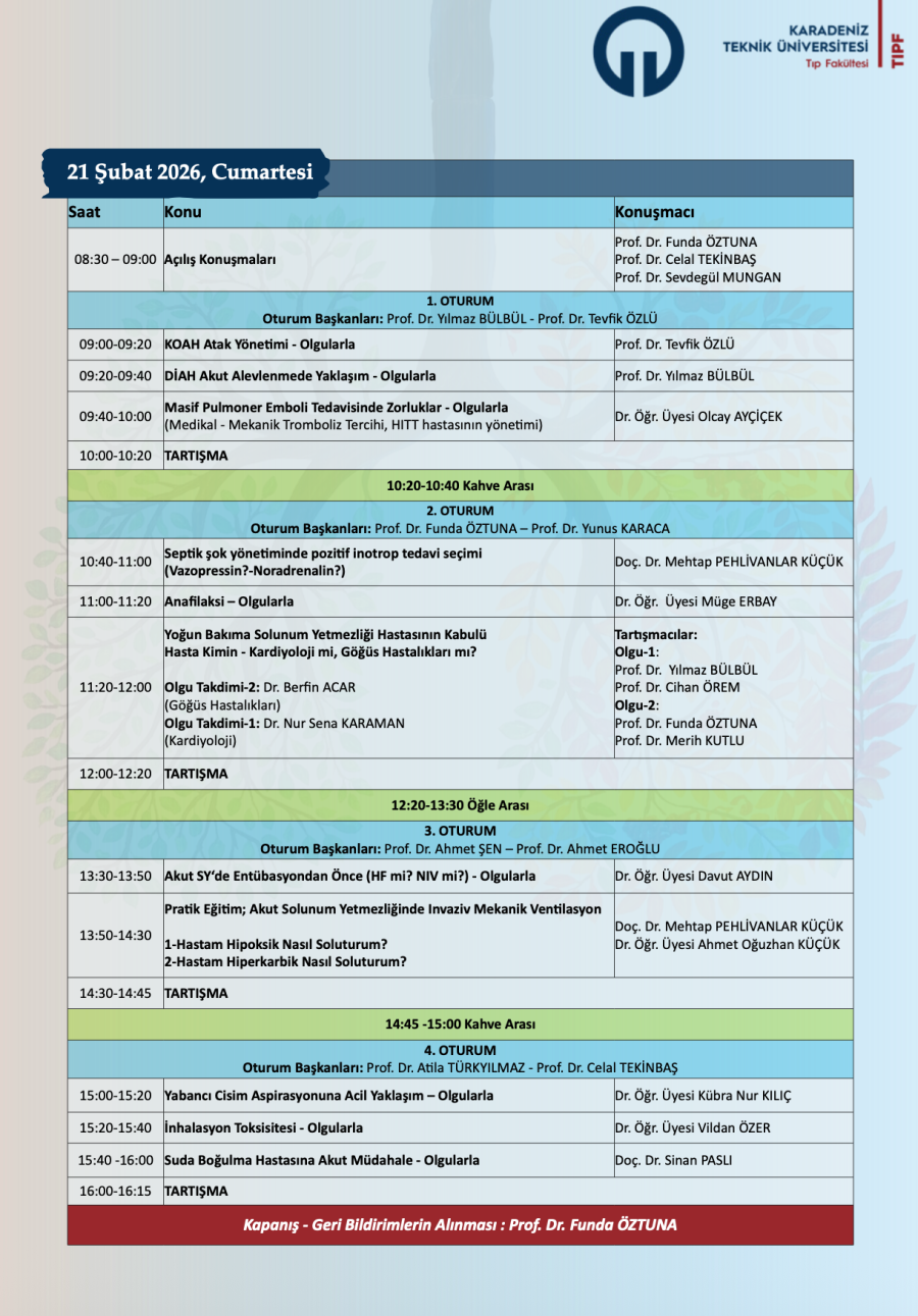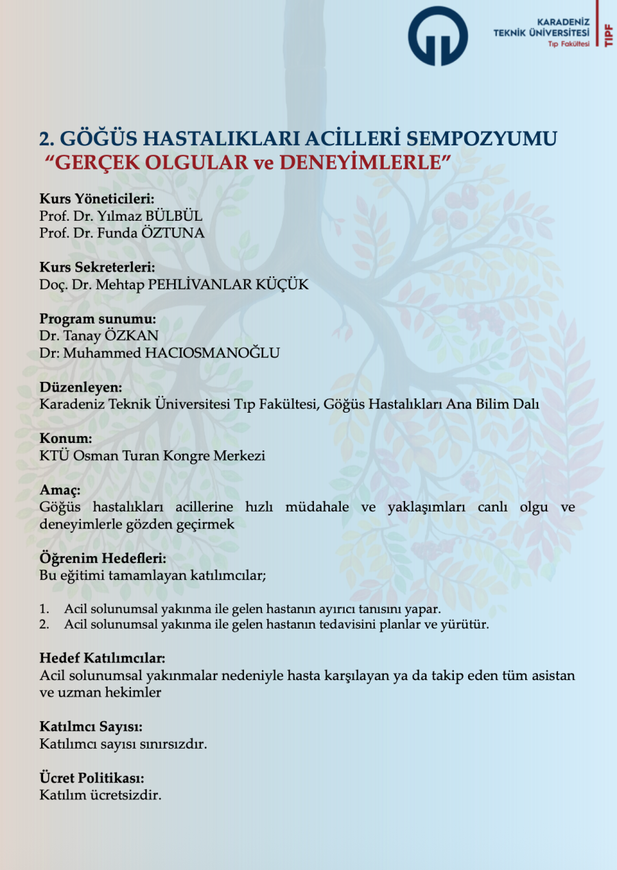 21 Şubat 2026 Tarihinde "2. Göğüs Hastalıkları Acilleri Sempozyumu : Gerçek Olgular ve Deneyimlerle" Sempozyumu Düzenlenecektir