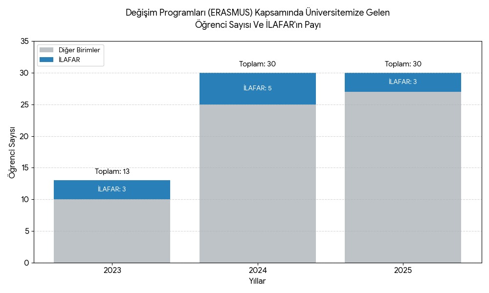 Üniversitemiz, son üç yılda uluslararası öğrenci hareketliliğinde bir büyüme kaydederken KTÜ İLAFAR bu süreçteki istikrarlı grafiği ile öne çıkıyor. KTÜ'ye değişim programları kapsamında 2023 yılında 13, 2024 ve 2025 yıllarında 30 uluslararası öğrenci gelirken bu dinamik büyüme sürecinde İLAFAR, stratejik bir birim olarak lokomotif görevi üstlendi. Öte yandan Uygulama ve Araştırma Merkezleri arasında öğrenci tercihleri bakımından ilk sıradaki yerini son üç yıldır korudu. Gelecek dönemlerde de öğrenci çeşitliliğini artırmayı hedefleyen İLAFAR, bilimsel projelerine ve öğrenci odaklı araştırma faaliyetlerine hız kesmeden devam edecek.