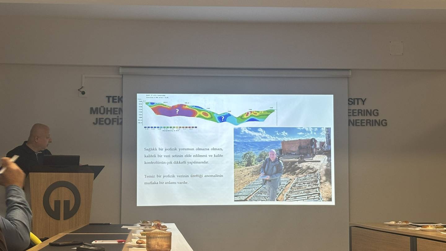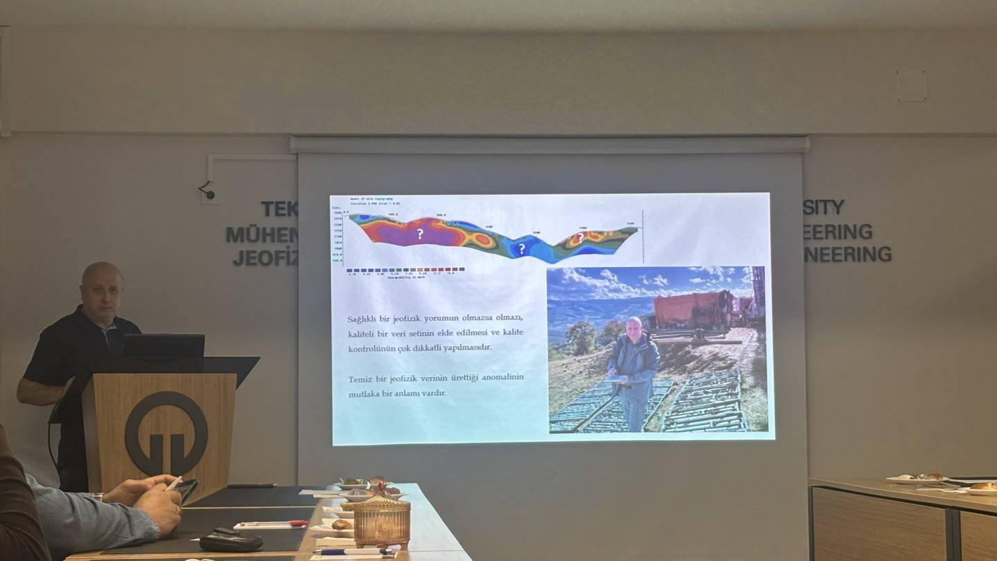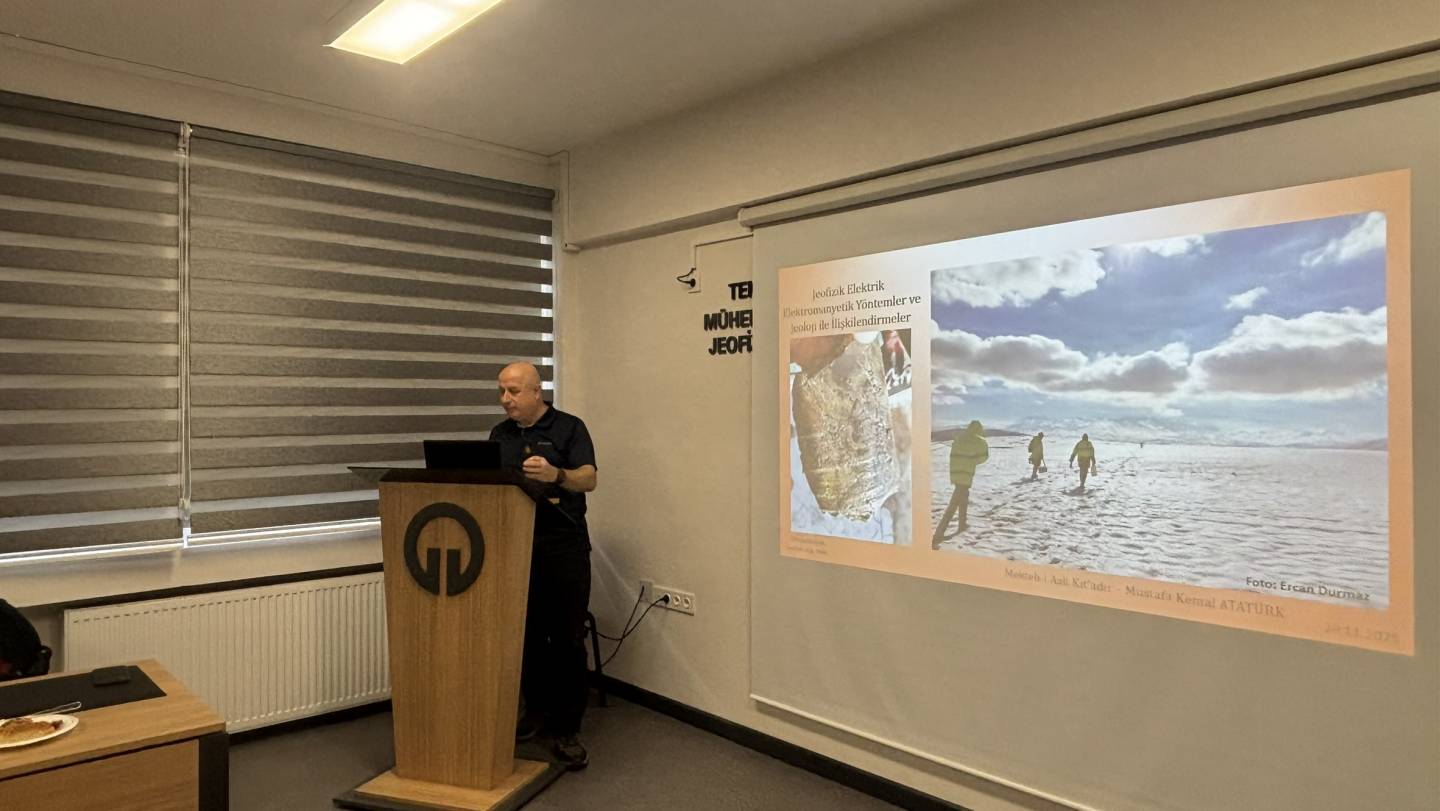 TMMOB Jeofizik Mühendisleri Odası Trabzon Şb Bş. Yük. Müh. Kürşad Bekar tarafından "Jeofizik Elektrik Yöntemler ve Jeoloji ile İlişkilendirmeler" isimli seminer verilmiştir.