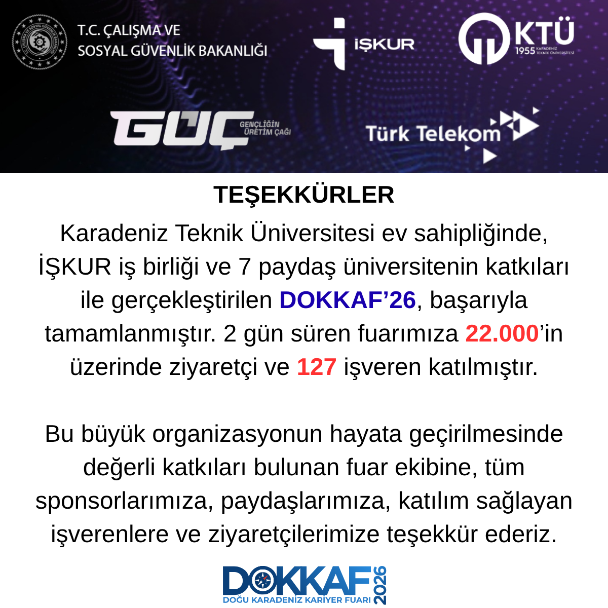 DOKKAF 2026 hazırlıkları, İŞKUR ve Karadeniz Teknik Üniversitesi iş birliğiyle genç yetenekleri iş dünyasıyla buluşturacak etkinlik planlamalarıyla sürüyor.