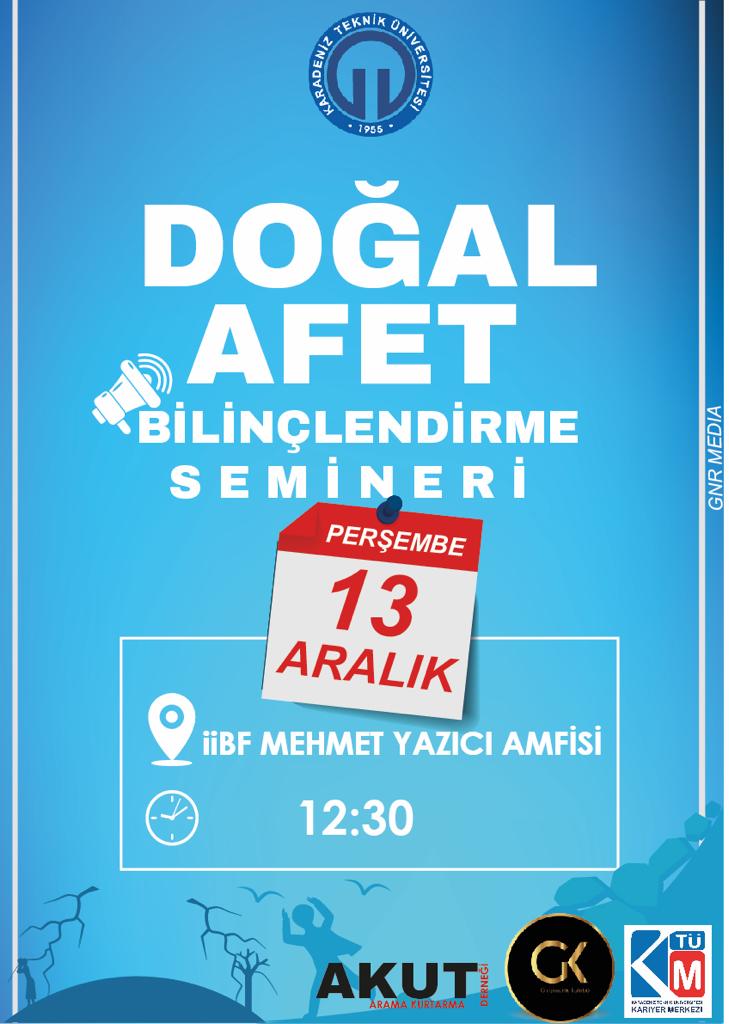 13 Aralık'ta Doğal Afet Bilinçlendirme Semineri Düzenlenecektir.