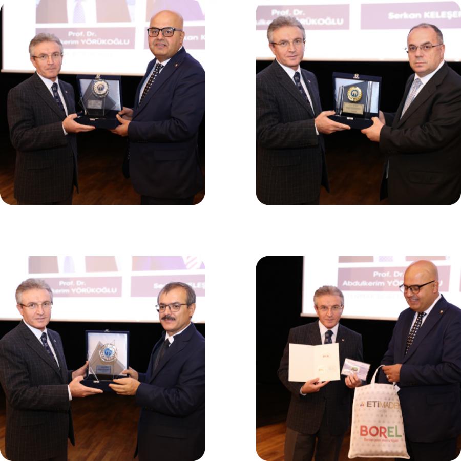 Eti Maden İşletmeleri Genel Müdürü Serkan KELEŞER ise konuşmalarında Eti Maden İşletmeleri’nin bor madeni başta olmak üzere ülkemizde yürütmekte olduğu maden çalışmalarına, geleceğe dönük planlarına ve bu alanda akademi camiasından beklentilerine yer verdi.