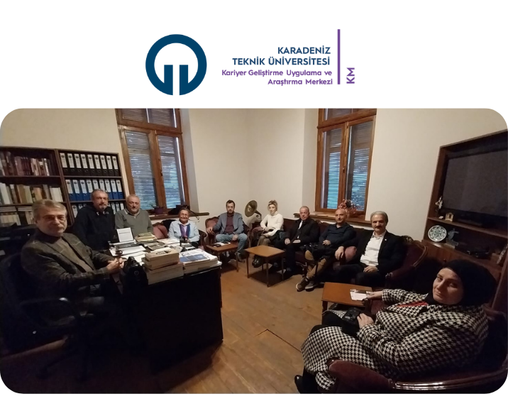 KTÜ Kariyer Geliştirme Uygulama ve Araştırma Merkez Müdürü Prof. Dr. Hülya KALAYCIOĞLU, Müdür Yardımcısı Öğr. Gör. Ahmet KÜÇÜK, Kütüphane ve Dökümantasyon Daire Başkanı Yakup KOMAR, Öğr. Gör. Zeki KAVANOZ, Şube Müdürü Ayşe BIYIK, Veri Tarama Sorumlusu Esra ÖZÇELİK, Trabzon Sanatevi'ni ziyaret ederek Trabzon Sanatevi Başkanı Adnan TAÇ, yönetim ve yürütme kurulu üyelerinden Mehmet KUVVET, Fethi YILMAZ ve Kamuran TUNA ile 27 Mart-02 Nisan 2023 tarihlerine denk gelen 59. Kütüphane Haftası'nda birlikte bir organizasyon yapabilmek için değerlendirilmelerde bulunuldu. Trabzon Sanatevi Yönetimine misafirperverlikleri için teşekkür ederiz.