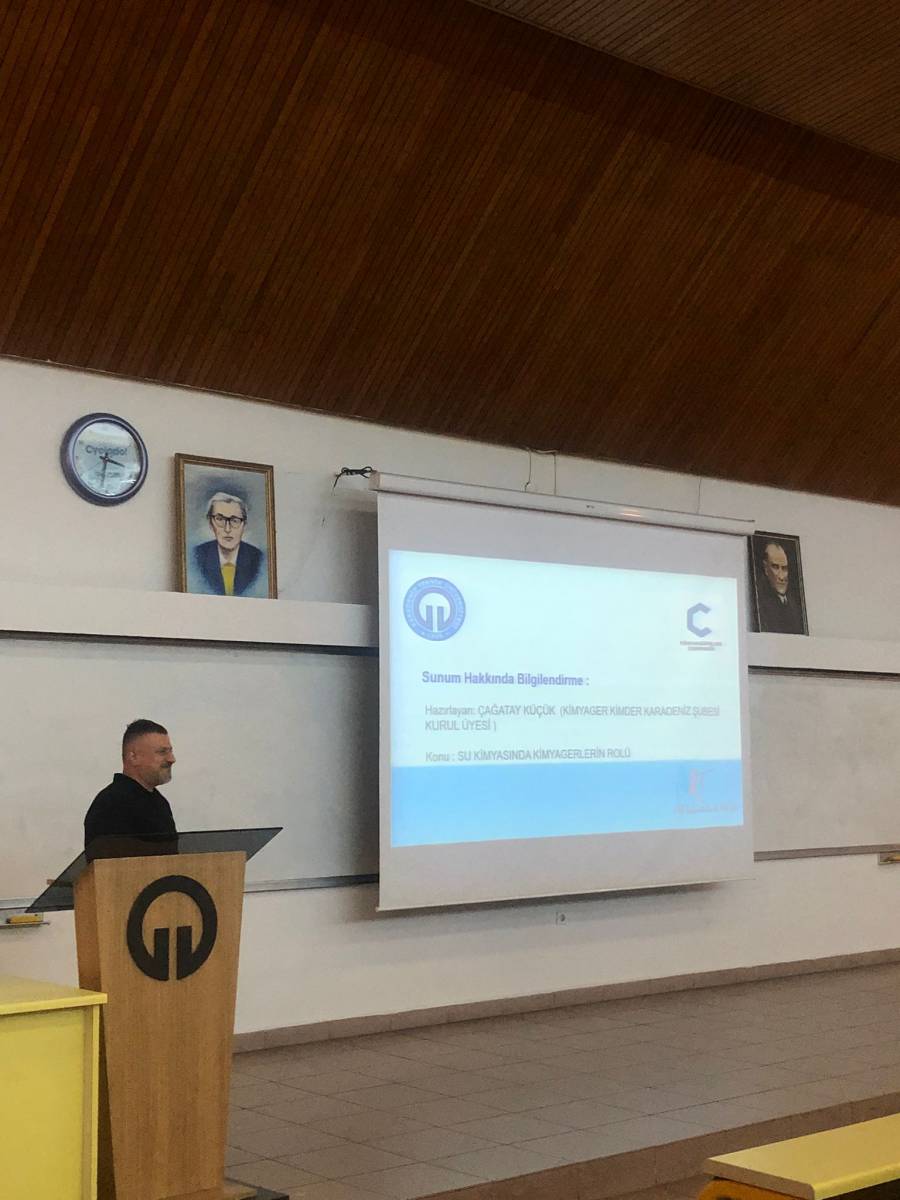 Sunumların ardından Kimya Bölüm Başkanı tarafından, değerli katkılarından dolayı Kimyager Çağatay Küçük’e ve Kimyagerler Derneği Karadeniz Şubesi yönetimine teşekkür plaketi takdim edildi. Etkinlik, akademi ile meslek örgütleri arasındaki iş birliğinin güçlenmesine katkı sağlaması ve öğrencilerin mesleki farkındalığını artırması açısından verimli ve anlamlı bir buluşma olarak sona erdi.