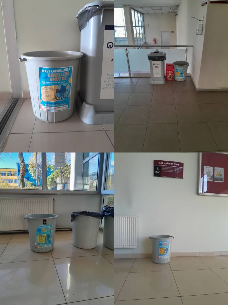 15.10.2025 Tarihinde "Engellere Umut Ol" sloganıyla "Sürdürülebilir kalkınma hedeflerine yönelik yıl içerisinde düzenlenen etkinlik sayısı" kapsamında mavi kapak toplama etkinliği başlattık. Bölümümüzün 5 farklı noktasına mavi kapakların biriktirilmesi için ayrı birer plastik bidon yerleştirdik. 1 Aylık proje süresinin sonunda 15.11.2025 tarihinde  biriken mavi kapakları bir araya getirdik ve üniversitemiz yetkililerine teslim ettik. Kampanyamıza destek olan bölümümüz personeli, öğrencileri, Emir Hami Saka ve sınıf arkadaşlarına teşekkürü borç biliriz.