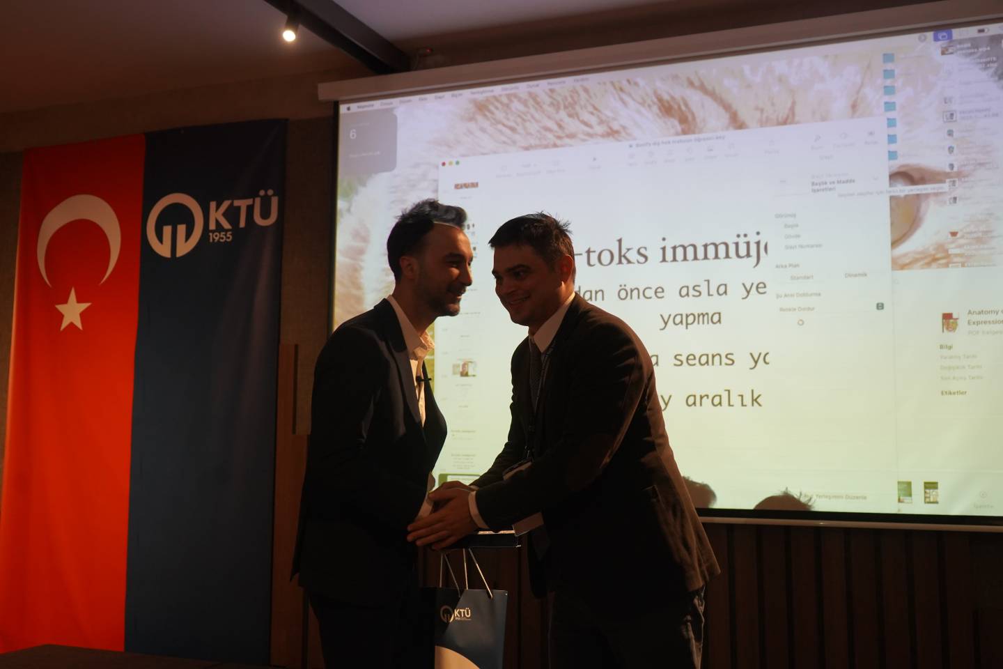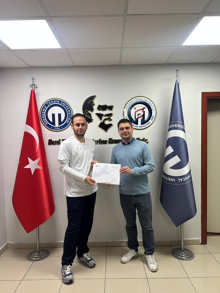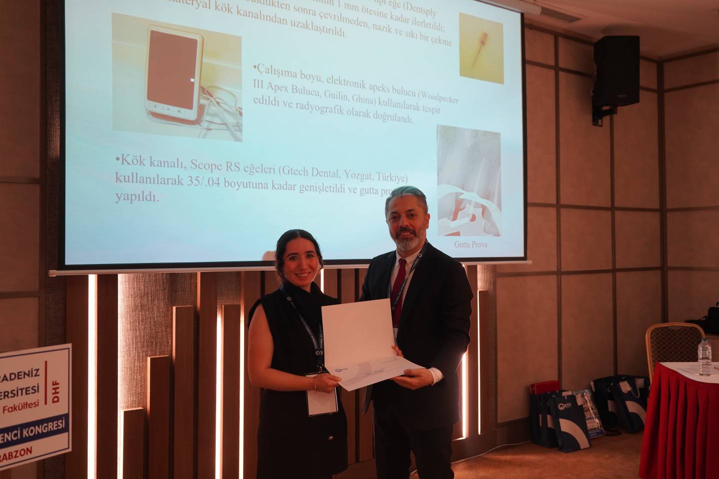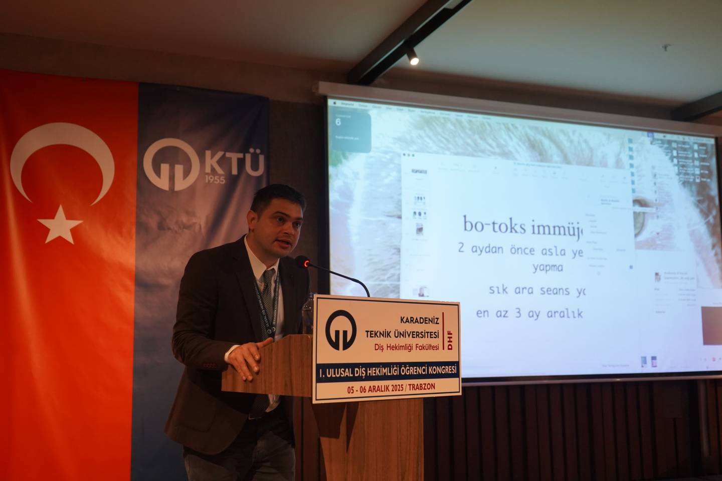 Belge takdim töreni, kongre başkanı ve Fakültemiz Klinik Bilimleri Bölümü Ağız, Diş ve Çene Cerrahisi Anabilim Dalı öğretim üyesi Doç. Dr. Efe Can Sivrikaya tarafından gerçekleştirildi. Doç. Dr. Sivrikaya, öğrencileri özverili çalışmaları ve etkinliğin düzenlenmesine sağladıkları destek nedeniyle tebrik ederek, akademik ve mesleki gelişimlerine katkı sunan bu tür organizasyonlarda aktif rol almanın önemini vurguladı.