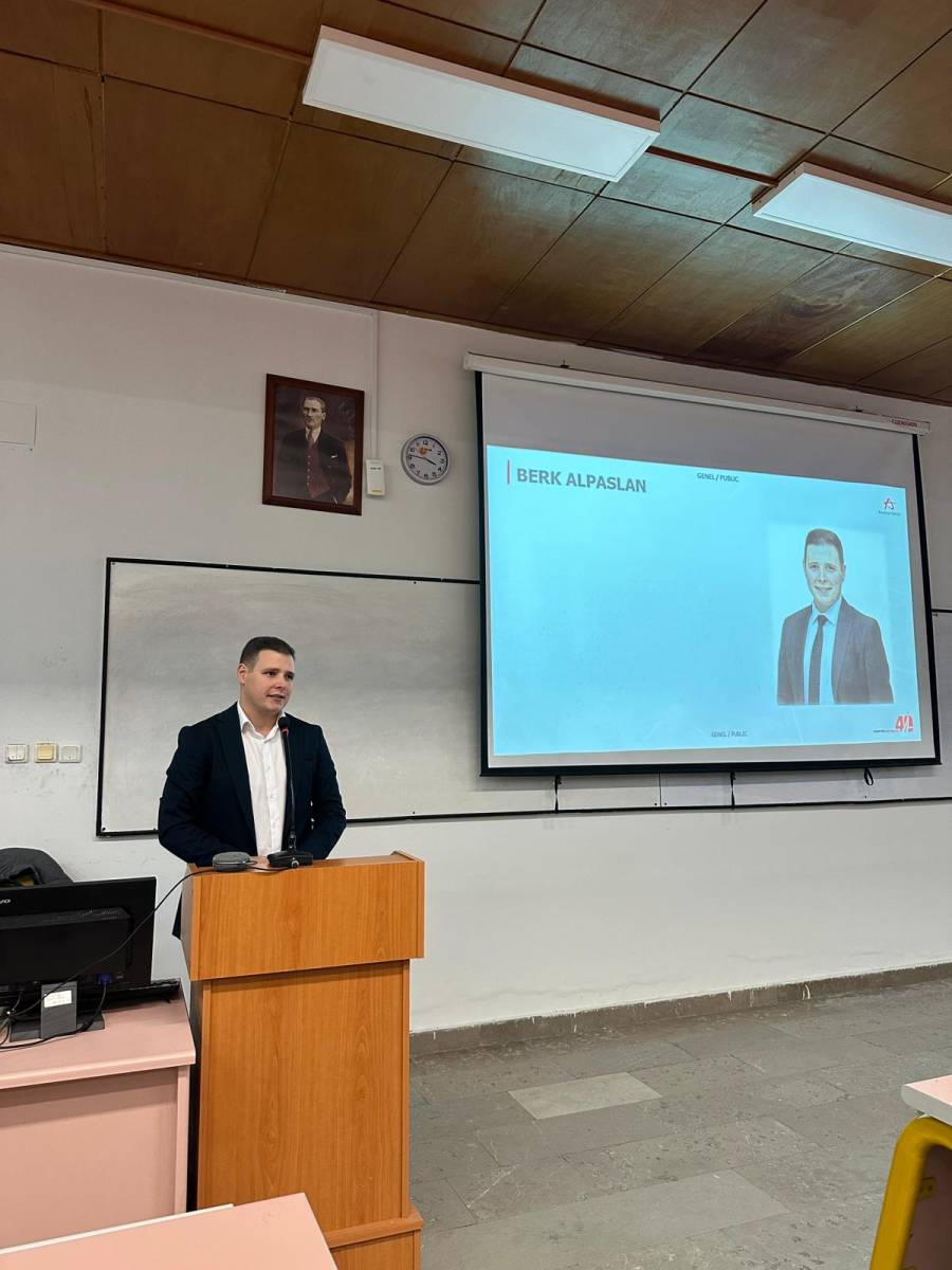 Berk Alpaslan, konuşmasında öğrencilik yıllarından başlayarak sektörde edindiği deneyimleri, kariyer basamaklarını ve mühendislik yolculuğundaki önemli dönüm noktalarını katılımcılarla paylaştı. Özellikle otomotiv sektöründe çalışma dinamikleri, iş ve staj olanakları, kurumsal yapıda mühendislik sorumlulukları gibi konulara değinerek öğrencilerimize değerli tavsiyelerde bulundu.