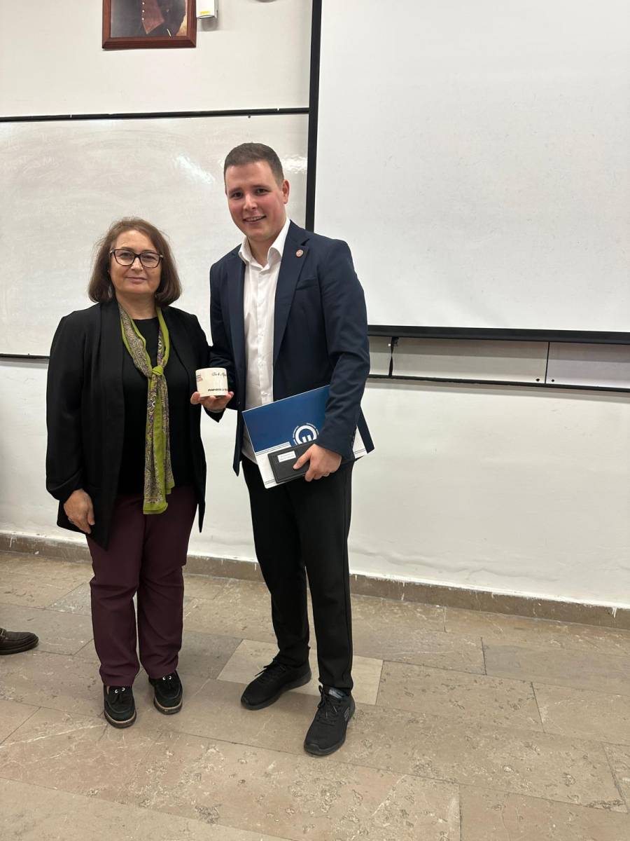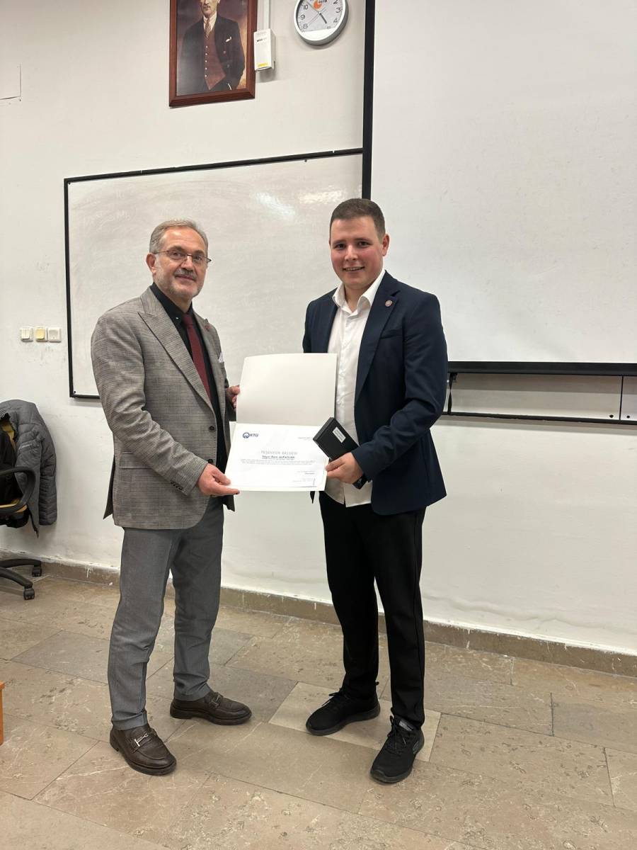 Etkinlik sonunda öğrencilerle etkileşimli bir soru-cevap bölümü gerçekleştirildi; katılımcılar merak ettikleri konuları doğrudan sektör deneyimiyle yanıtlayan mezunumuzdan dinleme fırsatı buldu. Samimi bir atmosferde geçen programın ardından, Bölüm Başkanımız ve değerli öğretim üyelerimiz Berk Alpaslan’a teşekkür ederek kendisine günün anısına hediyelerini takdim ettiler.