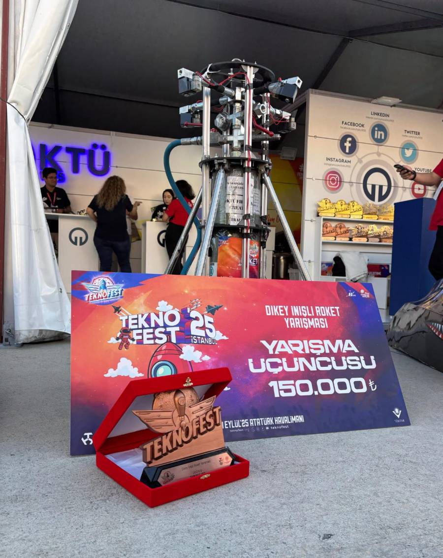 TEKNOFEST kapsamında düzenlenen Dikey İnişli Roket Yarışması’nda, bölümümüz öğrencilerinden oluşan KTÜ Creatiny Kulübü takımı üçüncülük derecesi elde etmiştir.