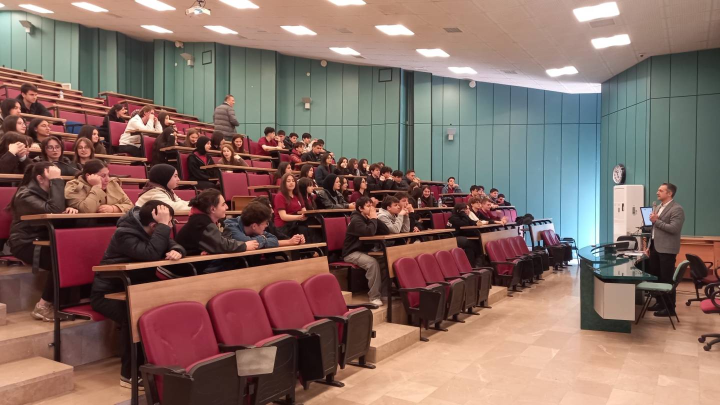 Ziyaret kapsamında, Dr. Öğr. Üyesi Ali Faruk ÖZYAŞAR tarafından Fakültemizin tanıtımı gerçekleştirildi. Öğrencilere eğitim-öğretim faaliyetlerimiz ve fakültemizin sunduğu olanaklar hakkında bilgi verildi. Ziyaret süresince öğrenciler, üniversite yaşamı ve akademik süreçler hakkında merak ettikleri soruları yöneltme fırsatı buldular. Etkinlik, samimi ve verimli bir atmosferde tamamlandı.