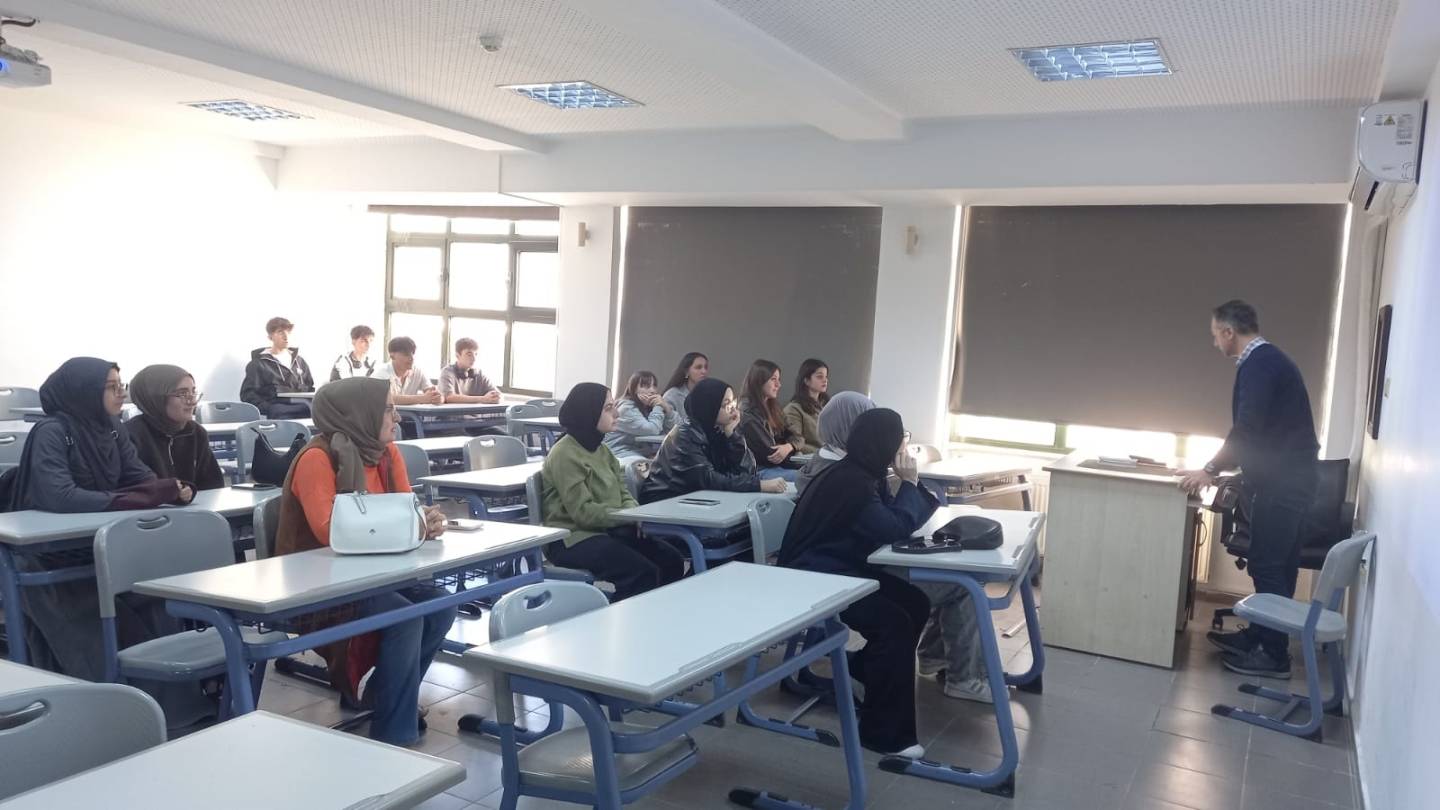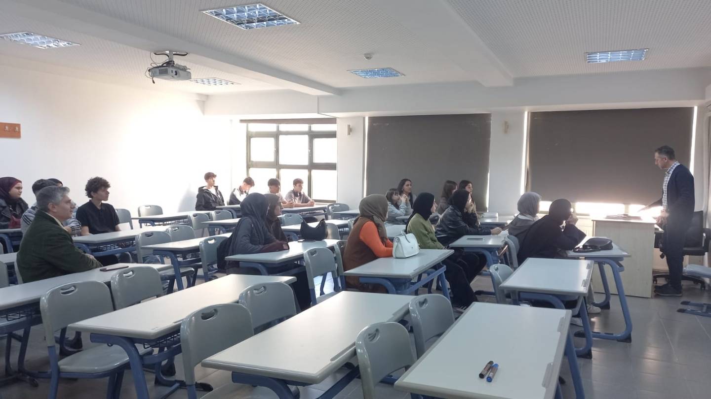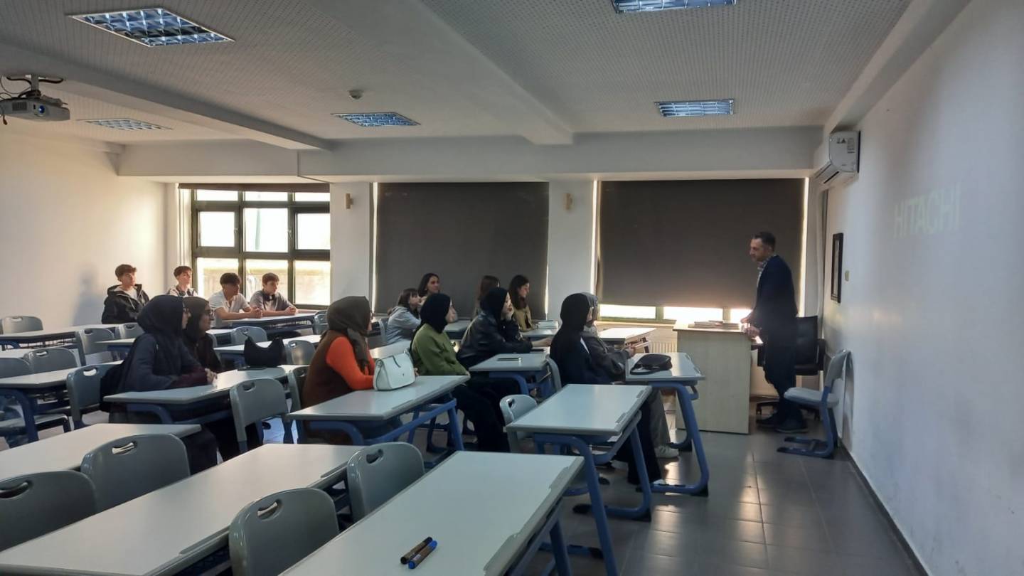 Ziyaret kapsamında, Dr. Öğr. Üyesi Ali Faruk ÖZYAŞAR tarafından Fakültemizin tanıtımı gerçekleştirildi. Öğrencilere eğitim-öğretim faaliyetlerimiz ve fakültemizin sunduğu olanaklar hakkında bilgi verildi. Ziyaret süresince öğrenciler, üniversite yaşamı ve akademik süreçler hakkında merak ettikleri soruları yöneltme fırsatı buldular. Etkinlik, samimi ve verimli bir atmosferde tamamlandı.